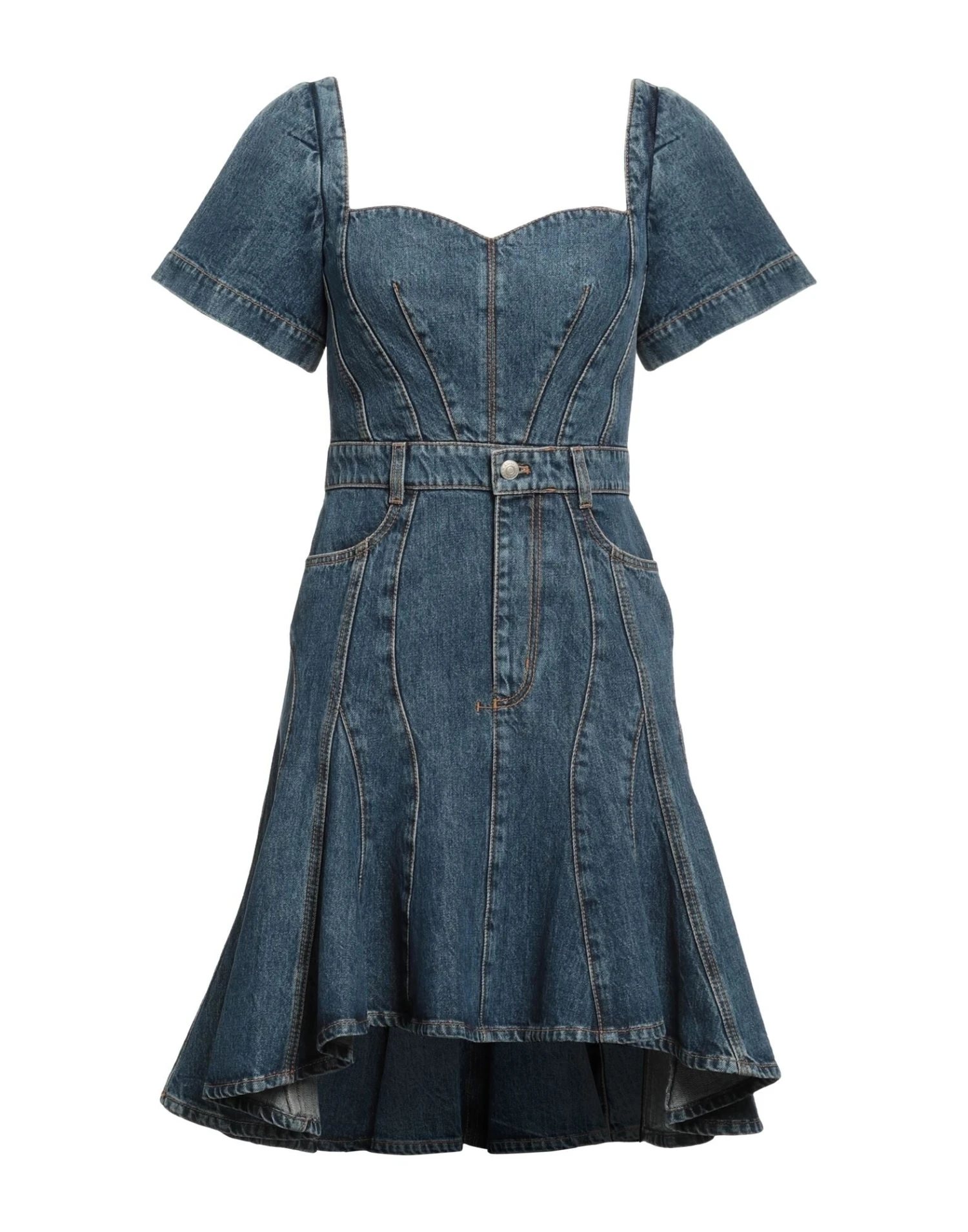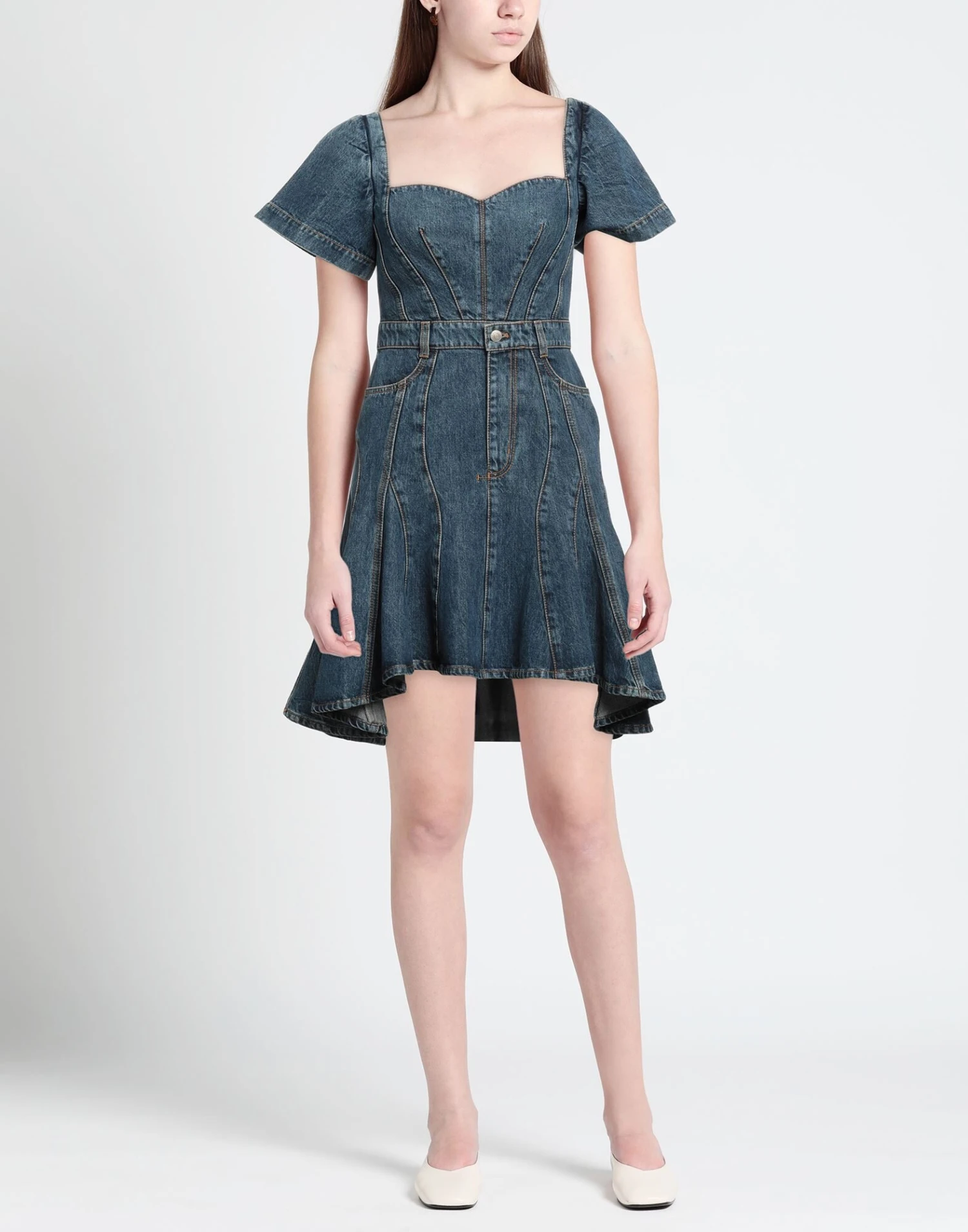 denim, senza applicazioni, tinta unita, collo con scollatura quadrata, lavaggio medio, maniche corte, interno parzialmente foderato, bottoni, zip, multitasche, modello a trapezio