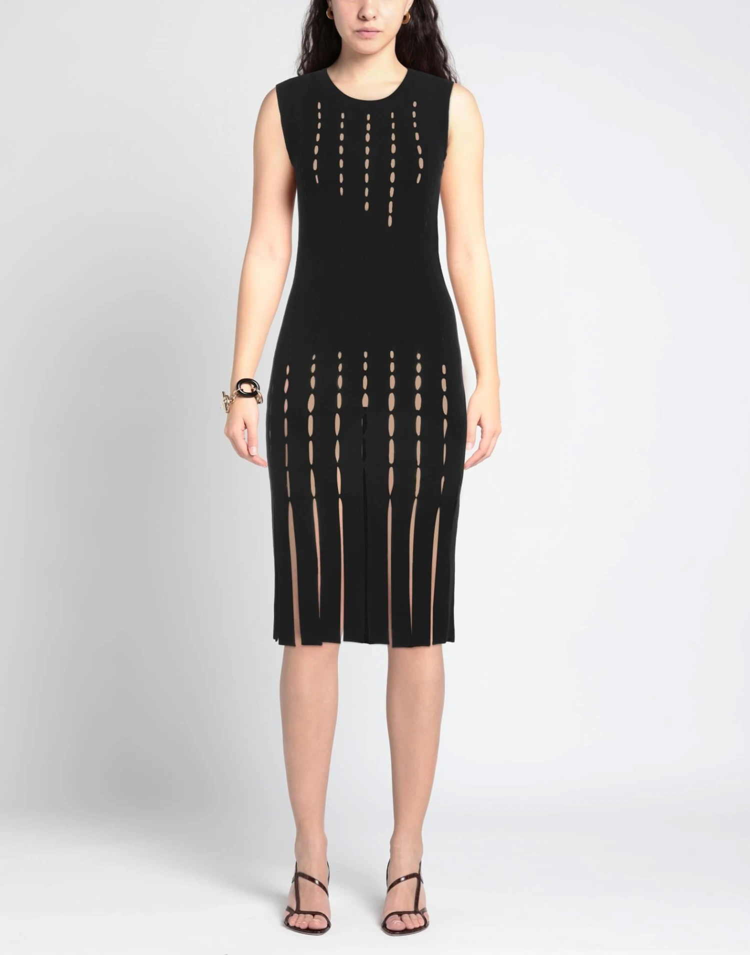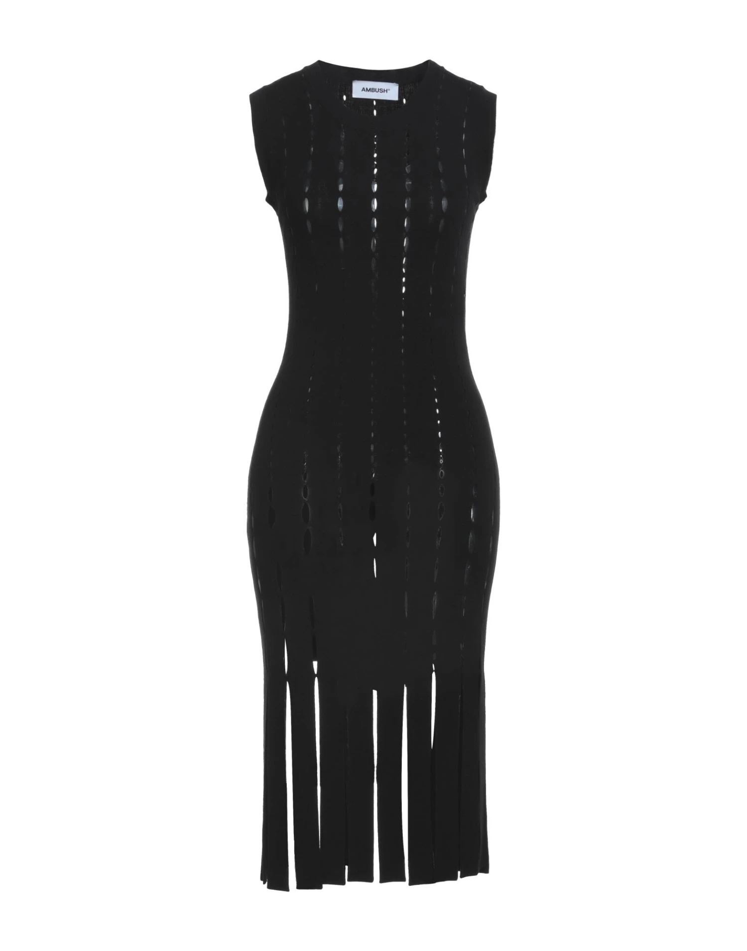 lavorato a maglia, maglia leggera, frange, tinta unita, collo tondo, senza maniche, interno sfoderato, senza tasche, modello a tubino