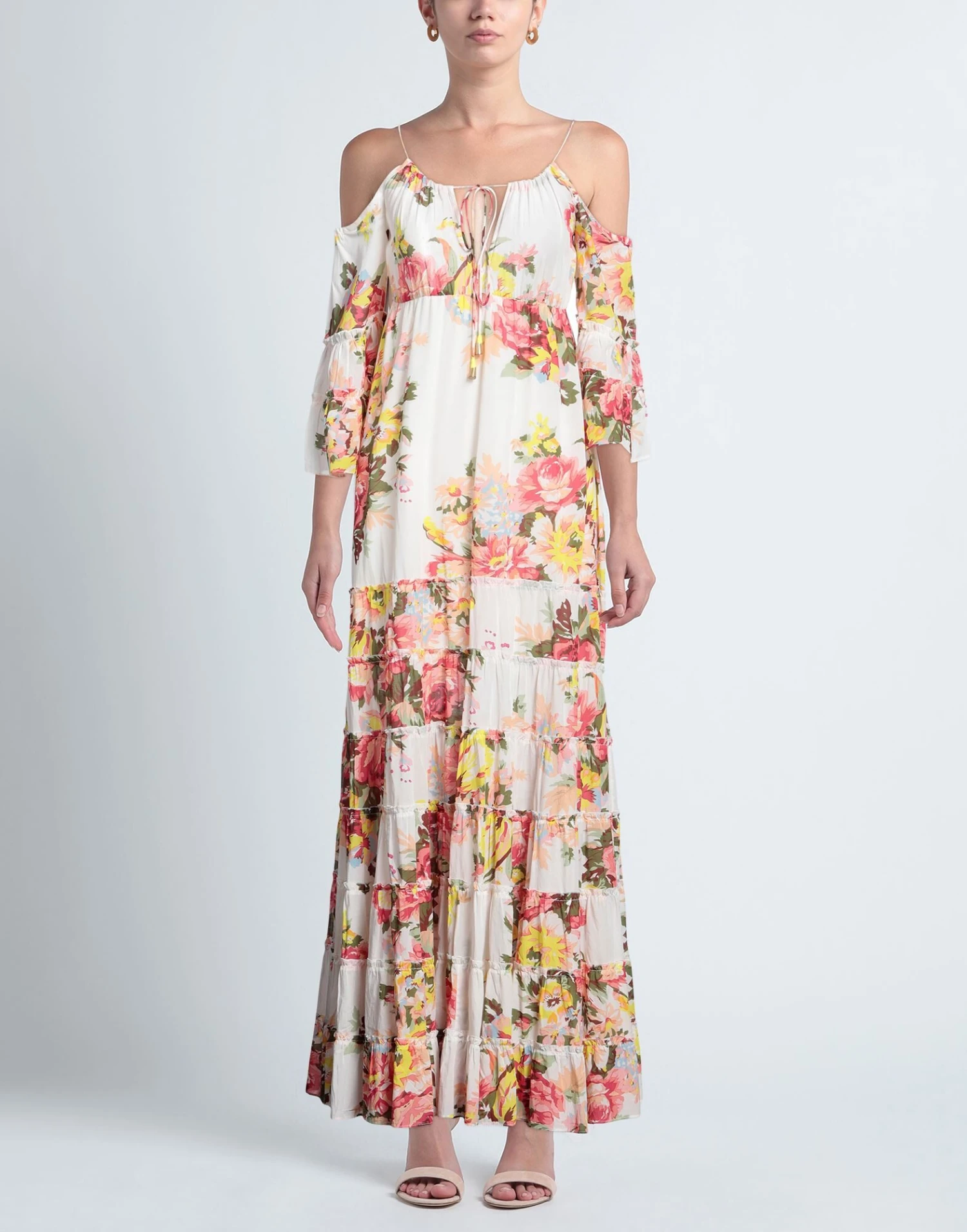 tela, arricciature, laccetti, fantasia floreale, collo ampio, maniche a 3/4, modello a trapezio