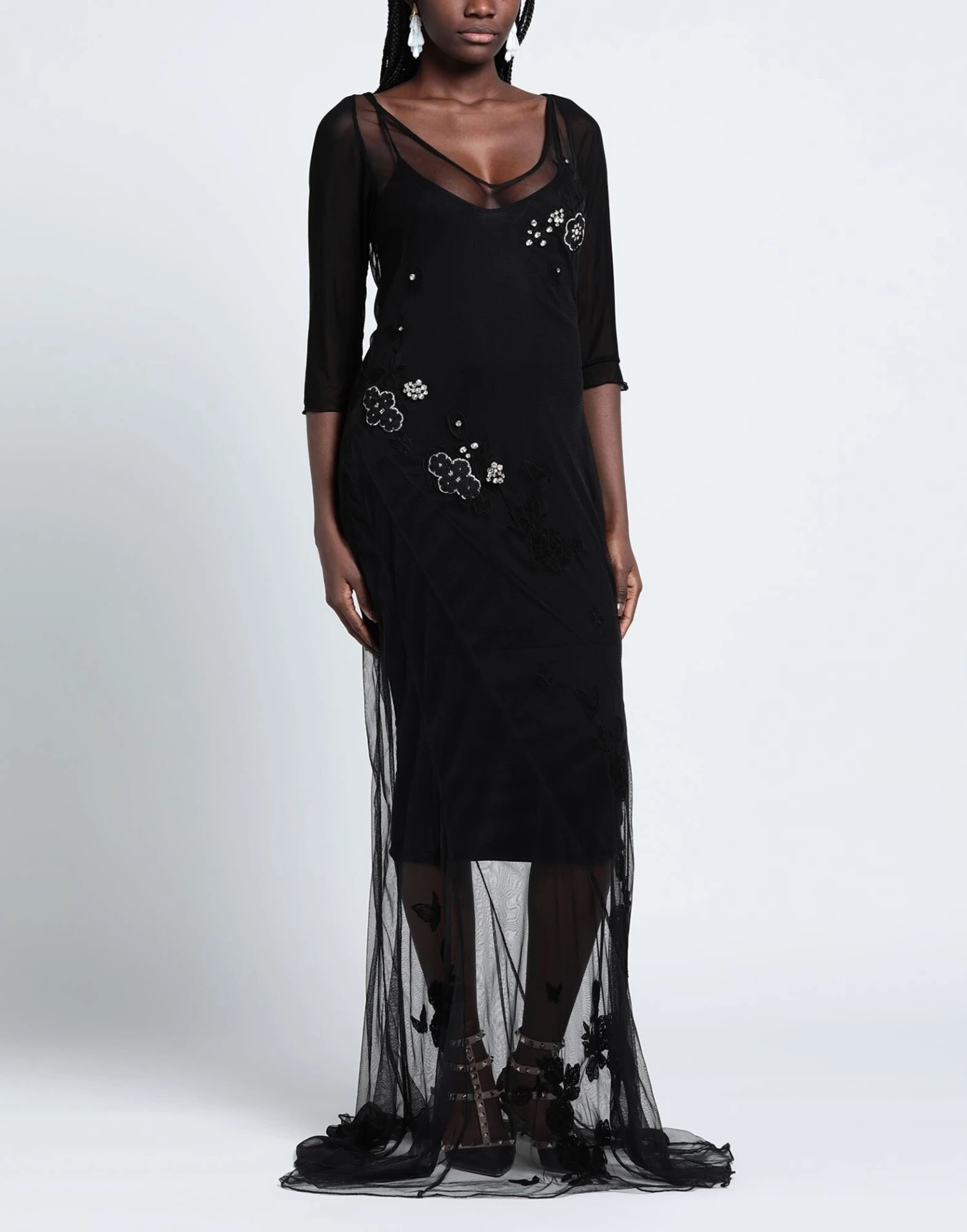 tulle, strass, tinta unita con applicazioni, collo a v, maniche lunghe, interno sfoderato, senza tasche, vestito