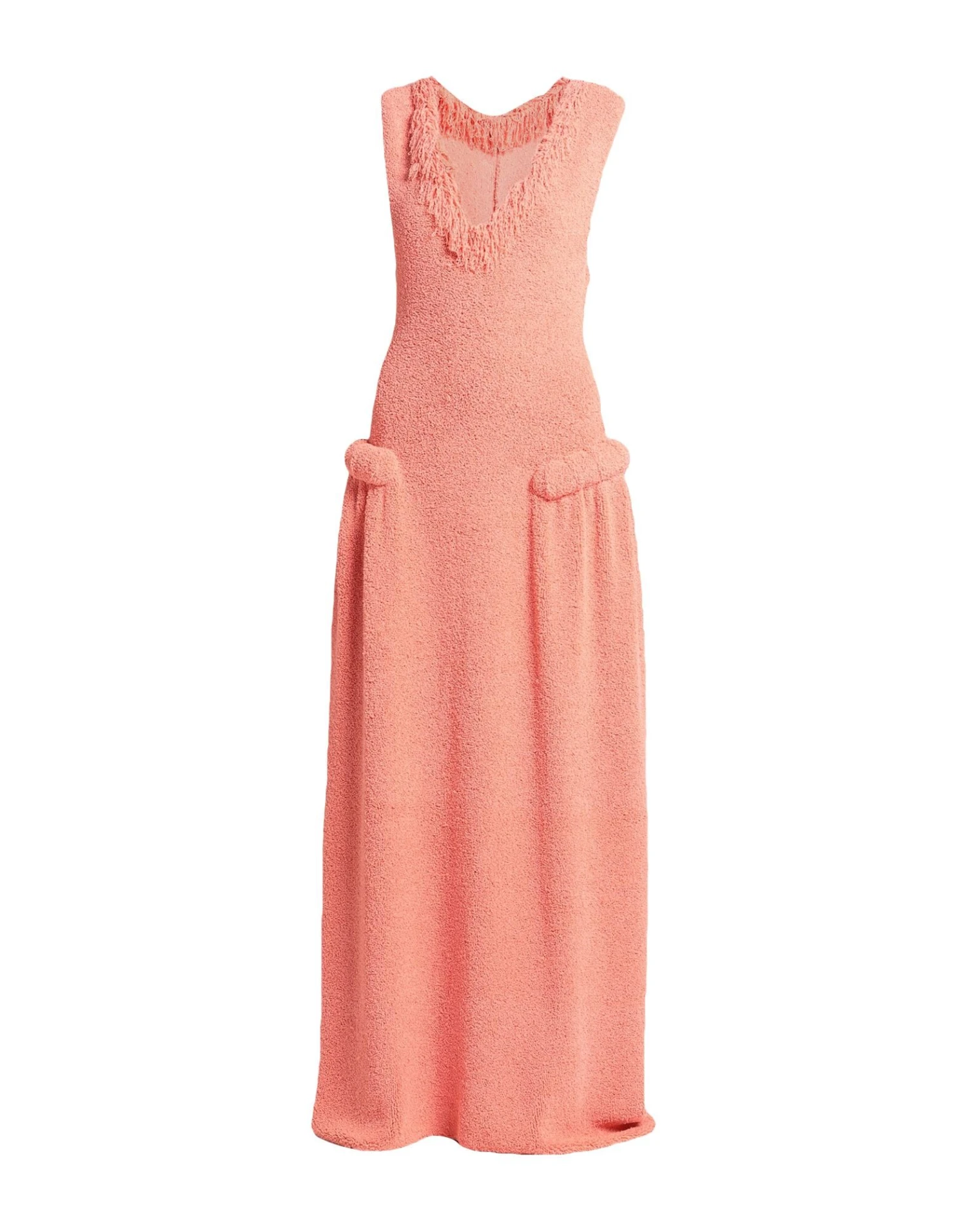 bouclè, frange, tinta unita, collo a v, senza maniche, interno sfoderato, senza tasche, elasticizzato, vestito