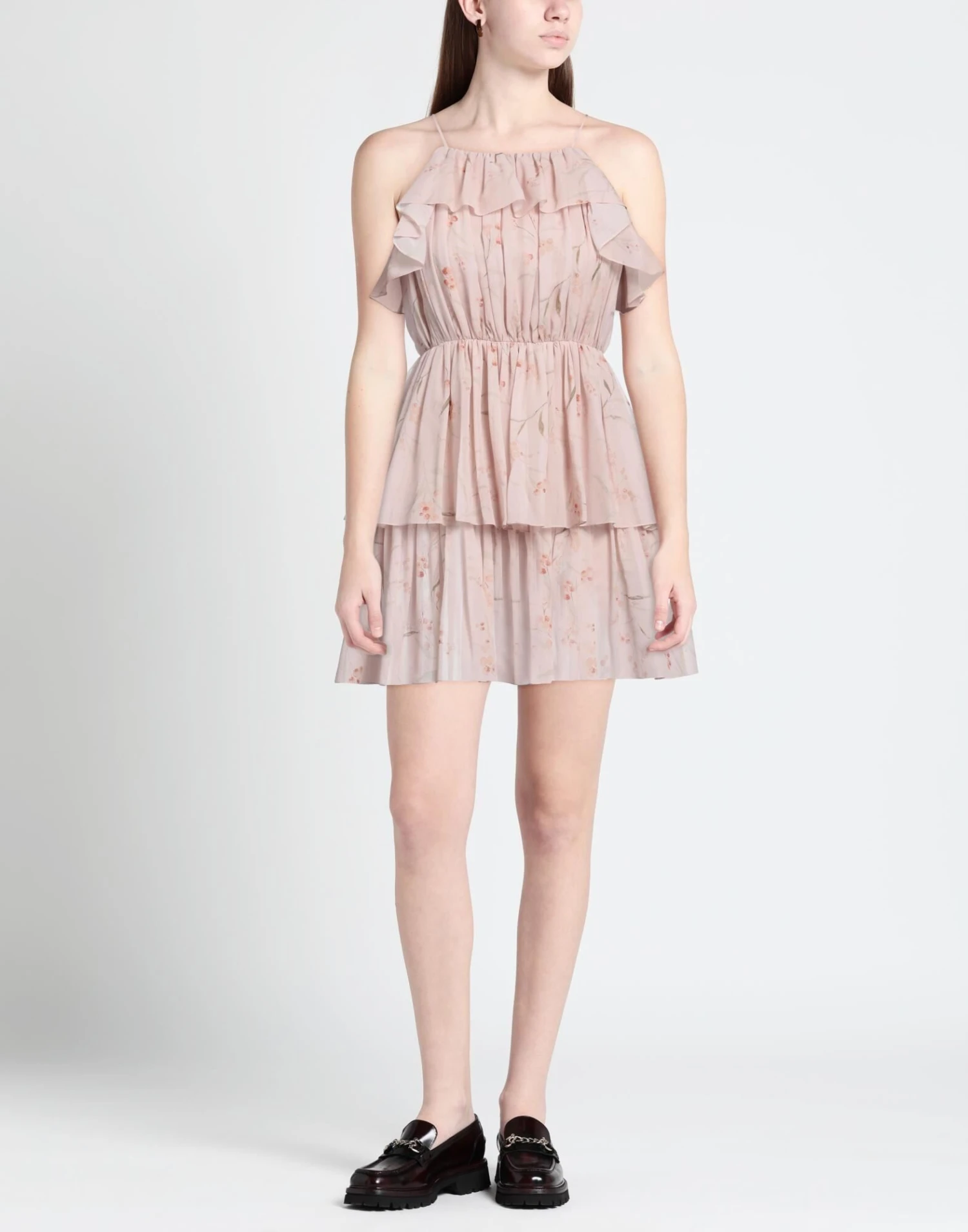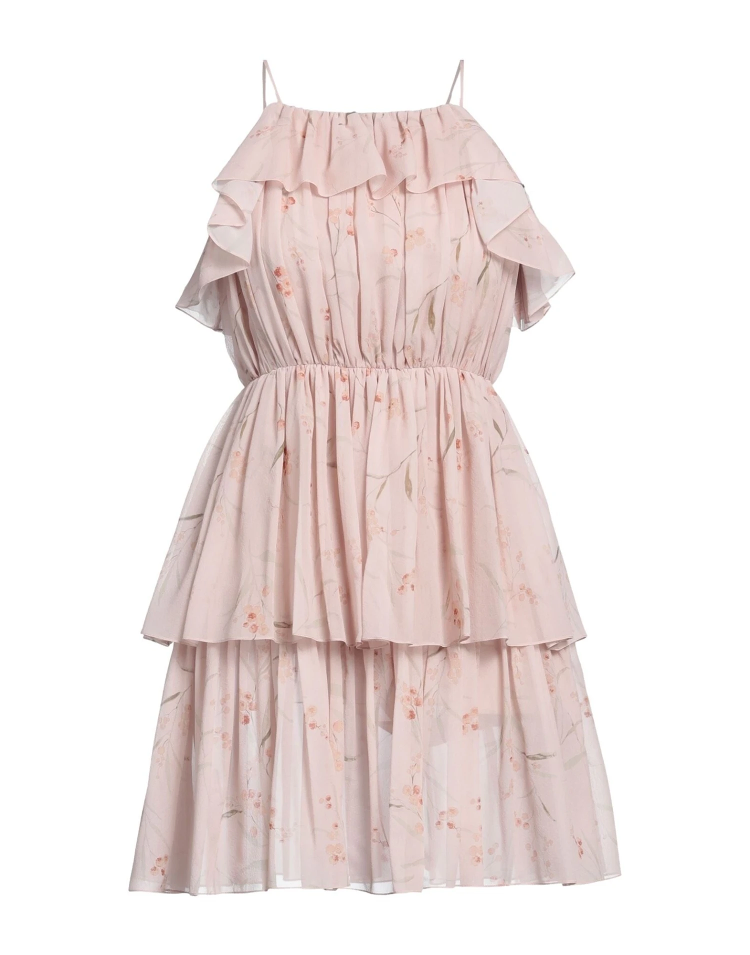 chiffon, balze, fantasia floreale, collo con scollatura quadrata, senza maniche, interno foderato, zip, senza tasche, modello a trapezio