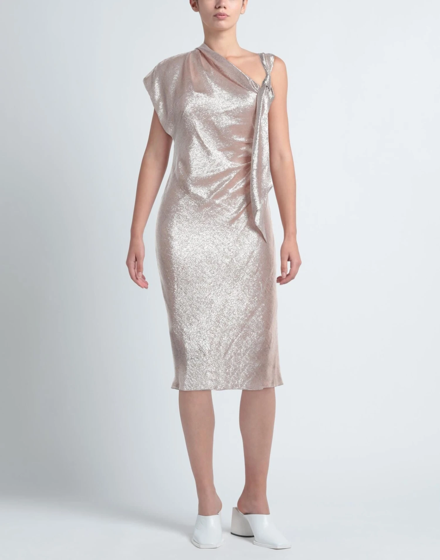 chiffon, lamè, senza applicazioni, tinta unita, collo ampio, monospalla, interno foderato, senza tasche, vestito