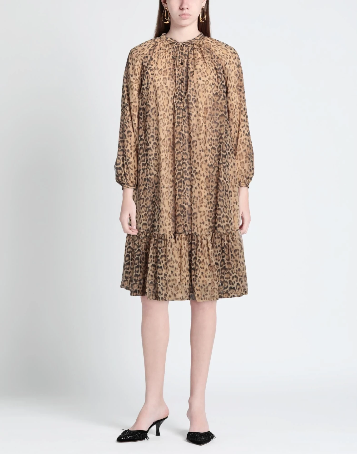 crêpe, laccetti, fantasia leopardata, collo tondo, maniche lunghe, interno foderato, bottoni, senza tasche, vestito