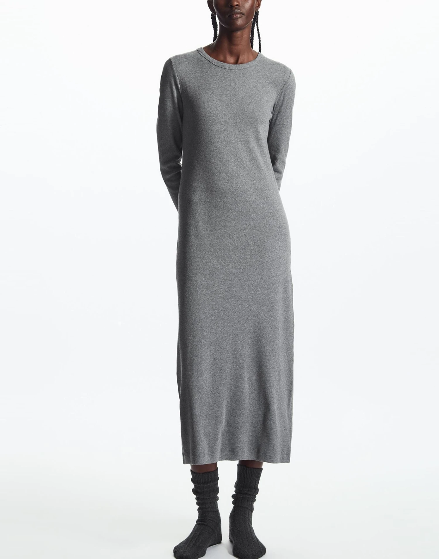 jersey, lavorazione a coste, senza applicazioni, tinta unita, collo tondo, maniche lunghe, interno sfoderato, senza tasche, elasticizzato, vestito