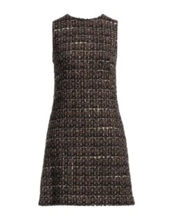 tweed, senza applicazioni, fantasia multicolore, collo tondo, senza maniche, interno foderato, zip, gancetti, senza tasche, modello a trapezio