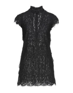 pizzo, senza applicazioni, tinta unita, collo alto, maniche corte, interno foderato, zip, senza tasche, vestibilità ridotta