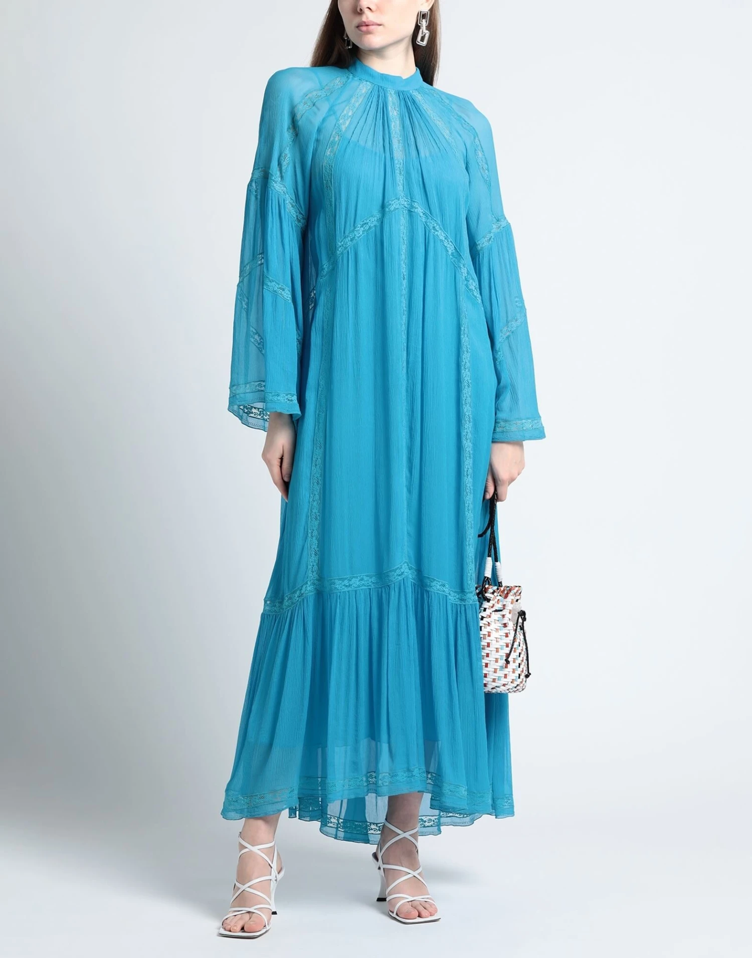 crêpe, pizzo, senza applicazioni, tinta unita, collo a v, maniche lunghe, maniche a campana, sottoveste interna, senza tasche, vestito