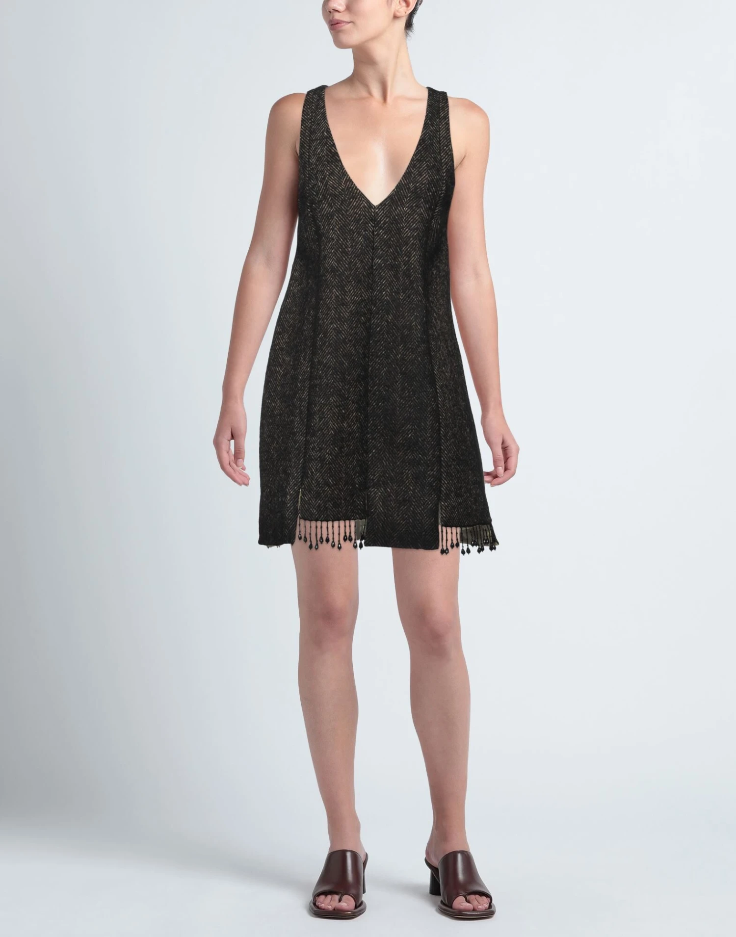 flanella, perline, spinato, collo a v, senza maniche, interno foderato, senza tasche, modello a trapezio
