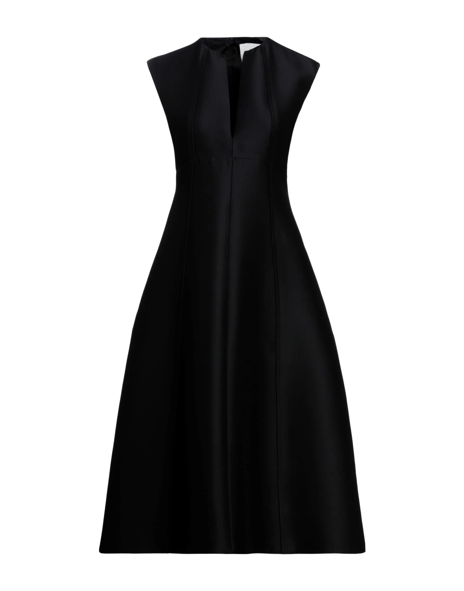 crêpe, senza applicazioni, tinta unita, collo con scollatura profonda, senza maniche, interno foderato, vestibilità ampia, modello a trapezio