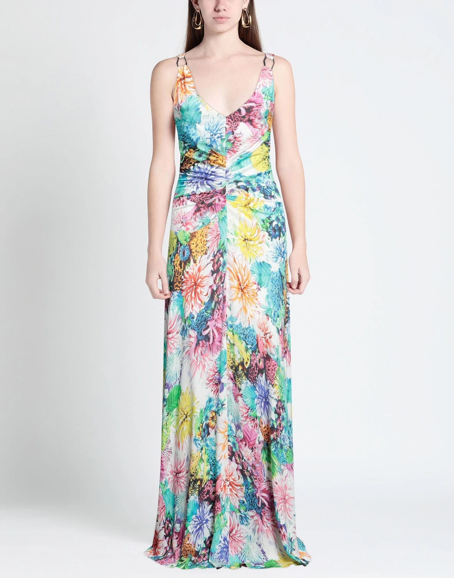 jersey sintetico, brand logo, arricciature, fantasia floreale, collo con scollatura profonda, senza maniche, interno parzialmente foderato, zip, senza tasche, modello a trapezio