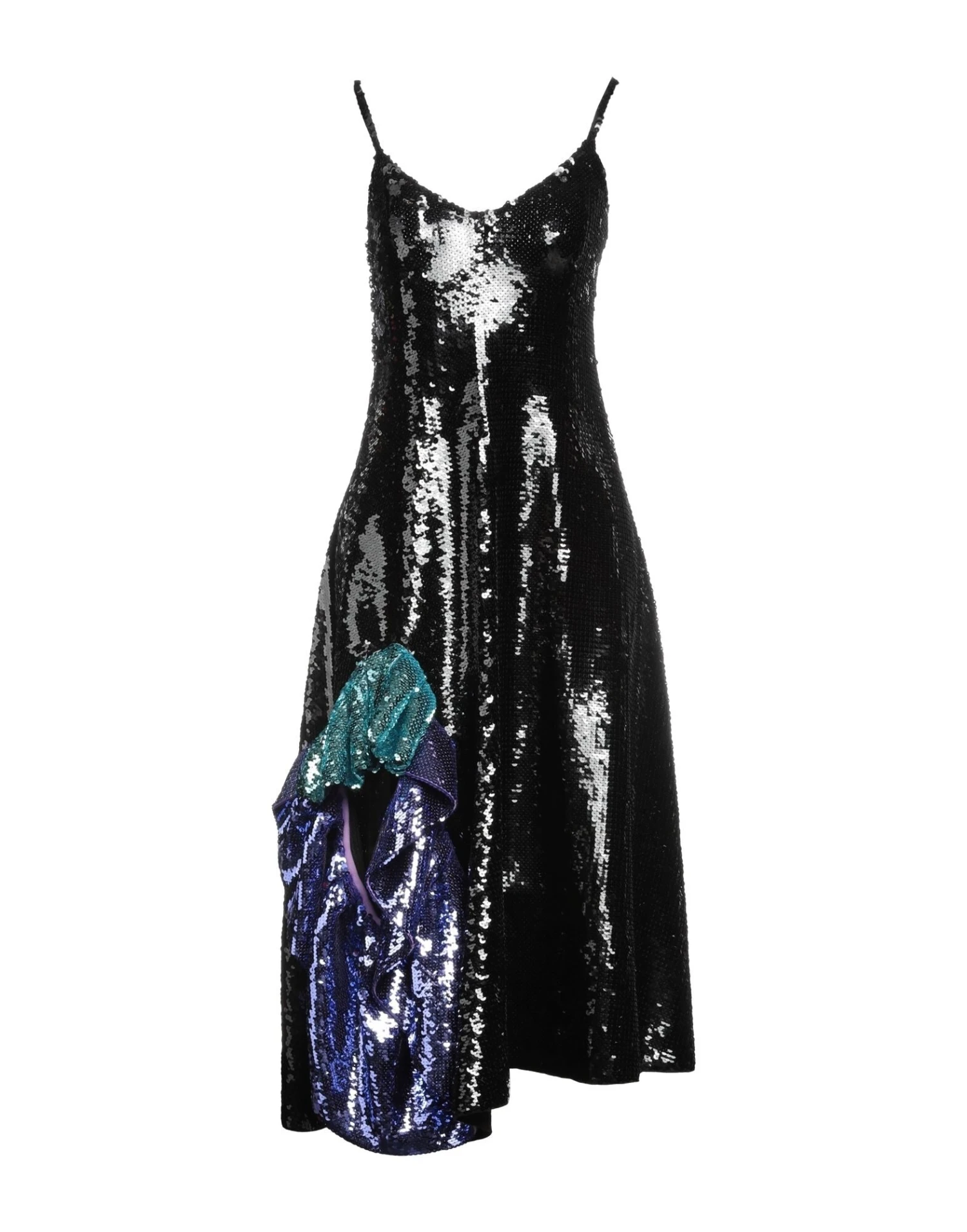 lavorato a maglia, maglia leggera, paillettes, fantasia multicolore, collo ampio, senza maniche, interno sfoderato, senza tasche, modello a trapezio