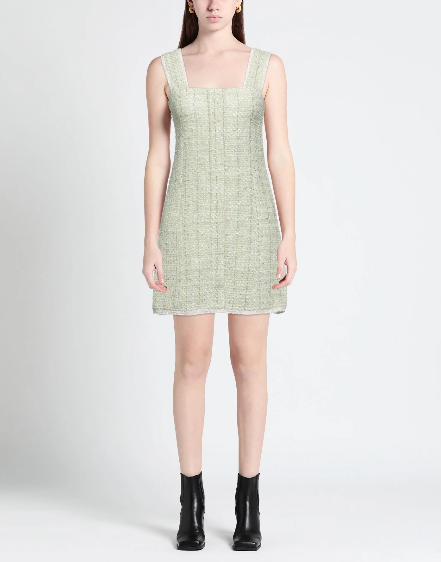 tweed, a righe, collo con scollatura quadrata, senza maniche, modello a trapezio