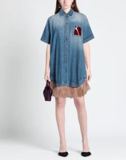 denim, stampa, cintura, fantasia multicolore, collo classico, lavaggio colorato, maniche lunghe, interno sfoderato, bottoni, multitasche, elasticizzato, modello chemisier