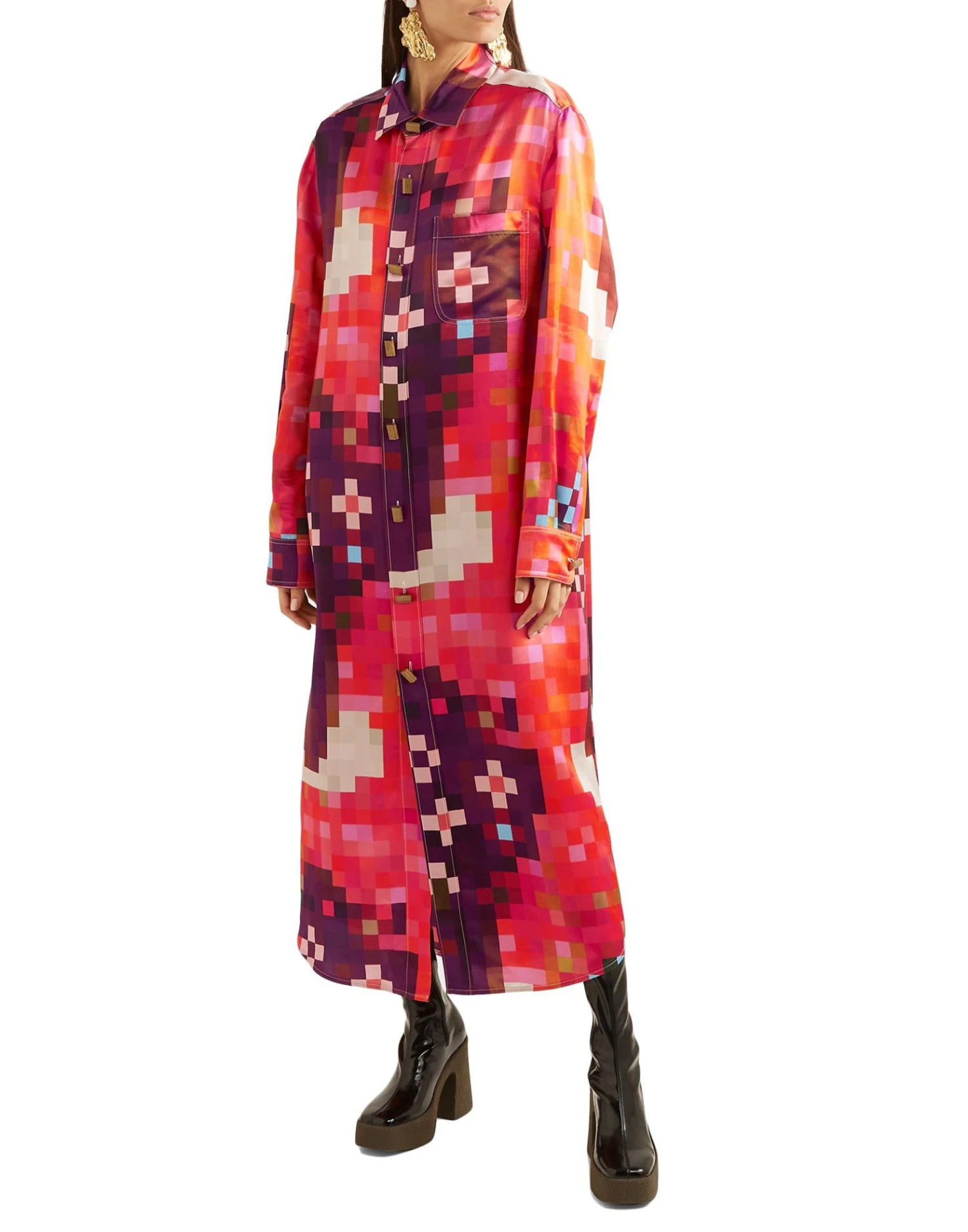 cady, fantasia multicolore, collo classico, maniche lunghe, chiusura sul fronte, interno sfoderato, bottoni, una tasca, polsini con bottoni
