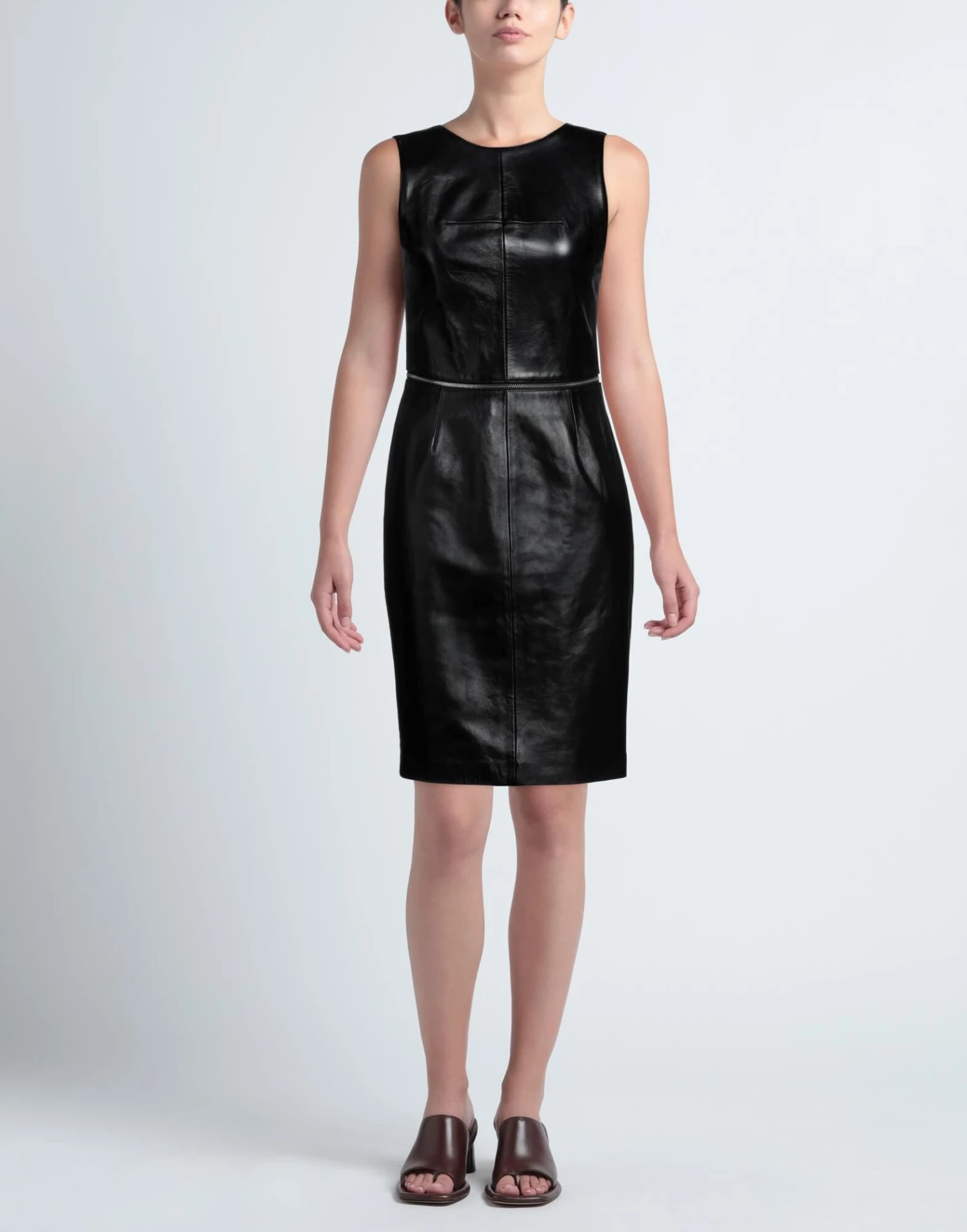 pelle, senza applicazioni, tinta unita, collo tondo, senza maniche, interno foderato, zip, senza tasche, contiene parti non tessili di origine animale, modello a tubino