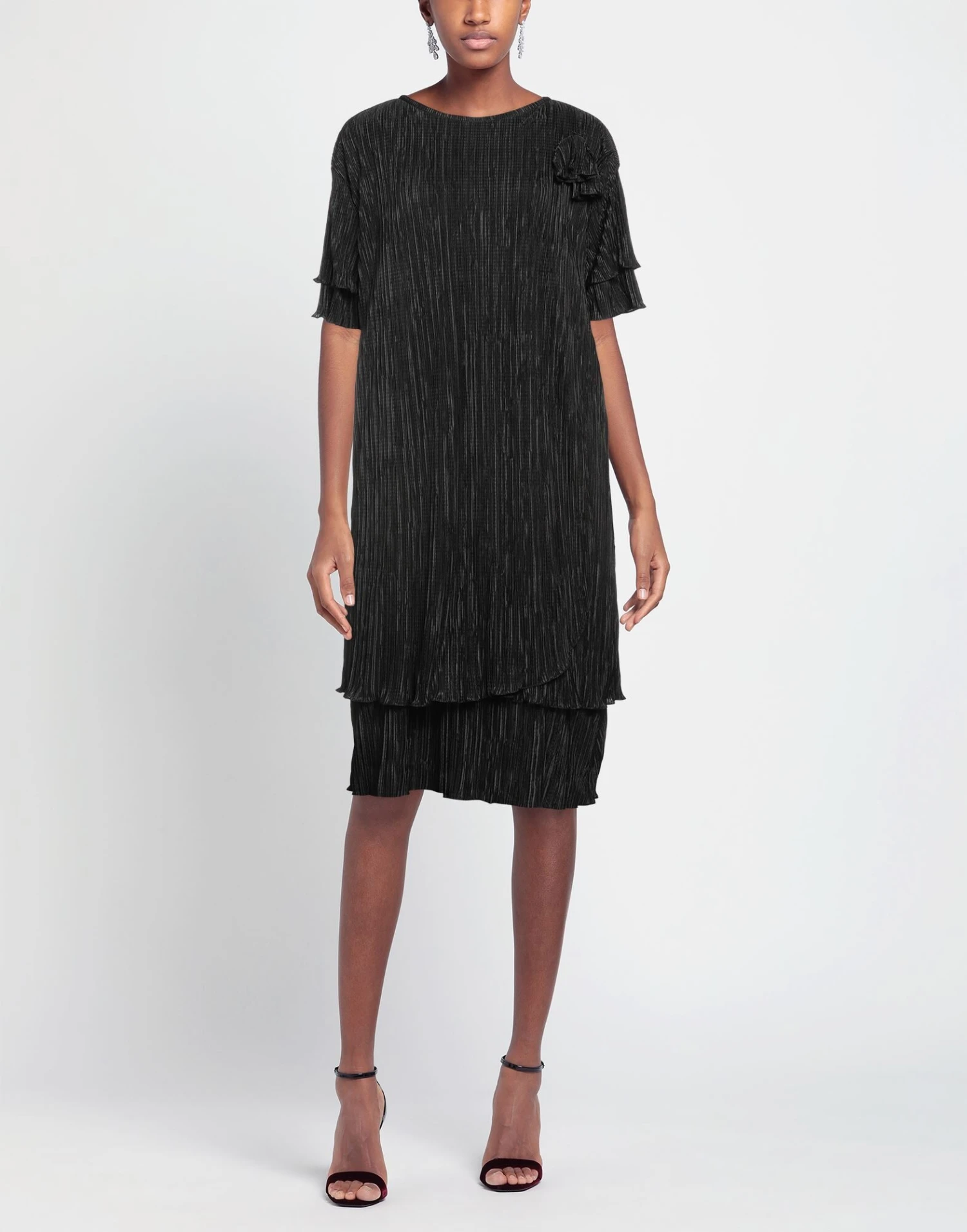raso, senza applicazioni, tinta unita, collo tondo, maniche corte, interno foderato, 1 bottone, senza tasche, vestito