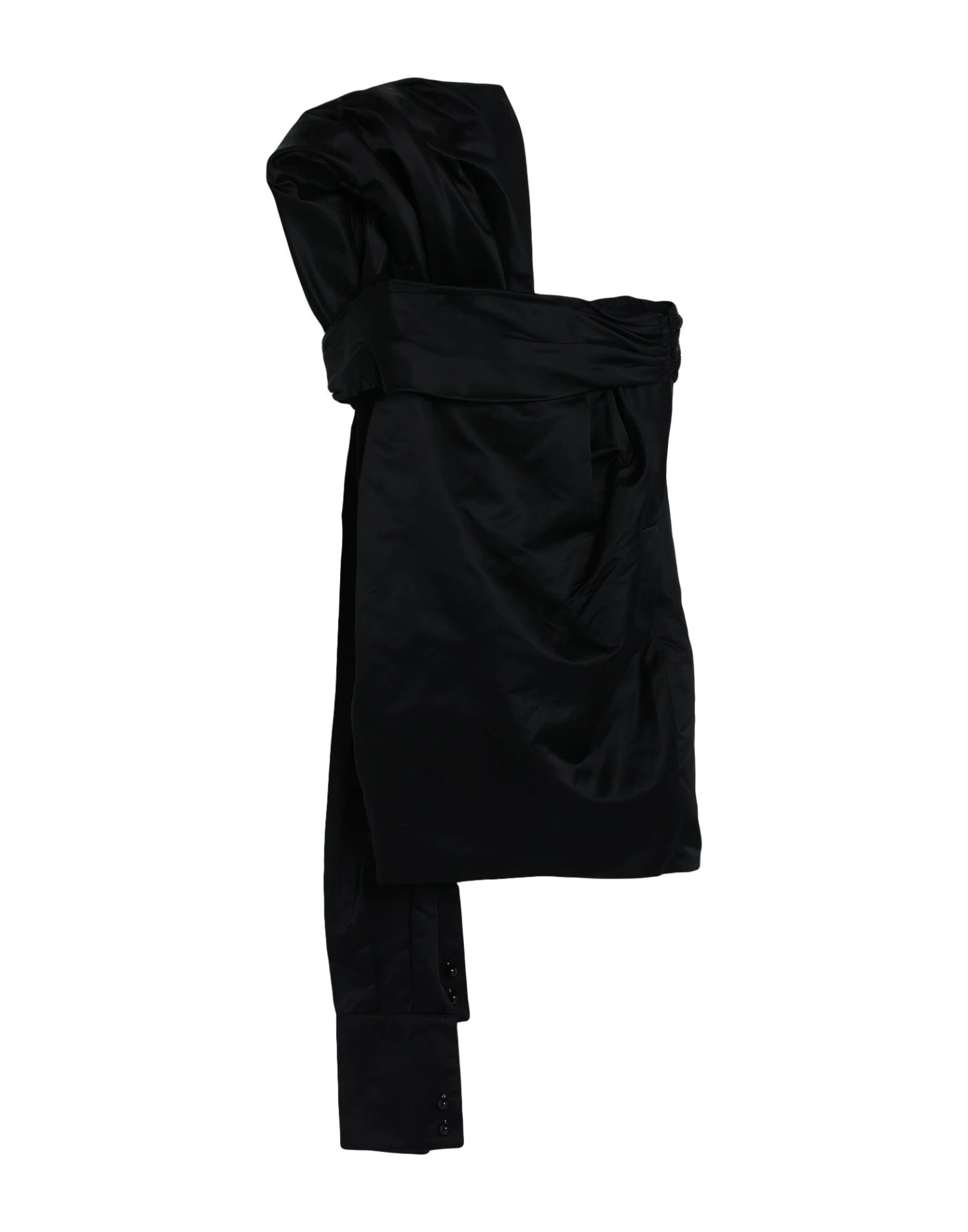 raso, arricciature, tinta unita, collo con scollatura profonda, senza maniche, interno foderato, zip, gancetti, multitasche, vestito