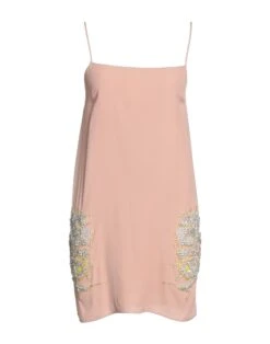 crêpe, strass, tinta unita, collo con scollatura profonda, senza maniche, interno foderato, senza tasche, modello sottoveste