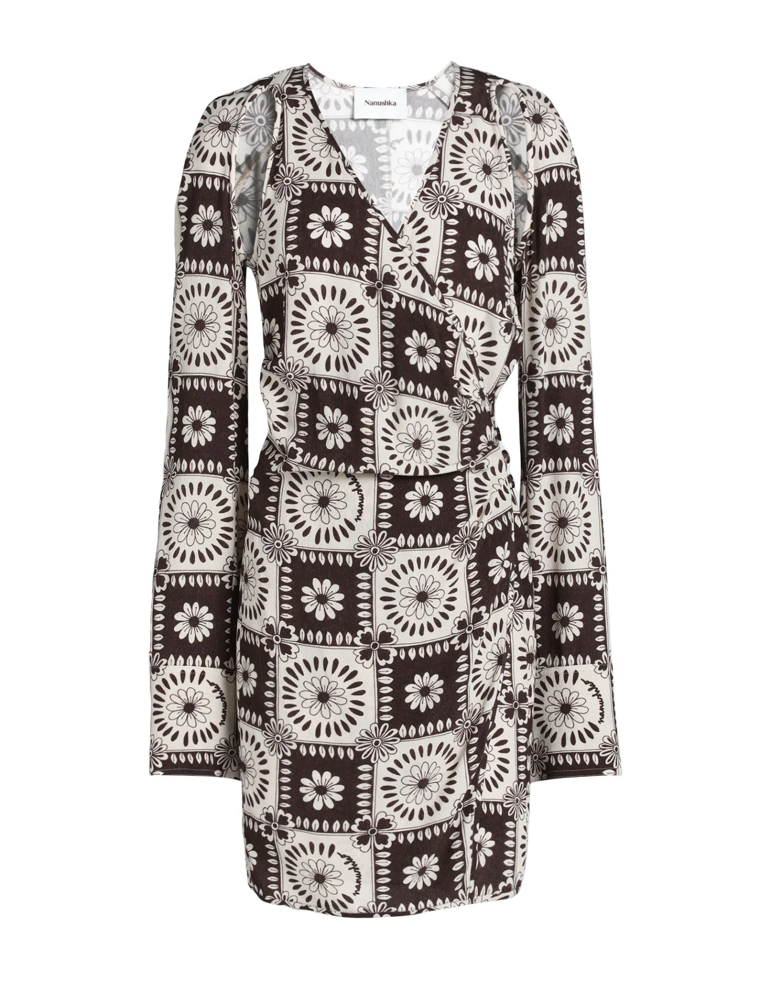 lavorato a maglia, maglia leggera, arricciature, fantasia bicolore, fantasia floreale, collo alto, maniche lunghe, interno parzialmente foderato, senza tasche, modello a tubino