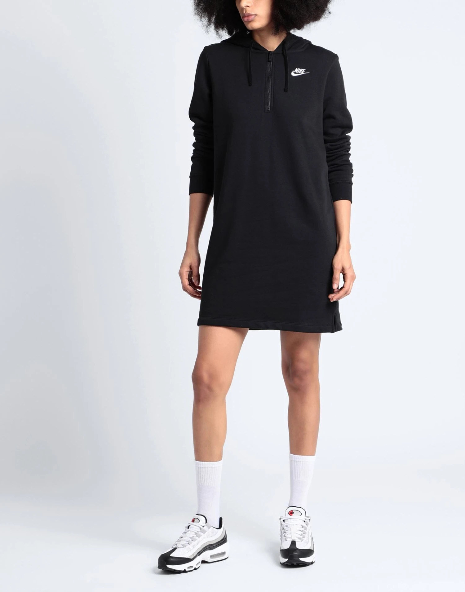 felpa, brand logo, tinta unita, collo con cappuccio, maniche lunghe, interno in felpa invernale, zip, senza tasche, fondo con spacchetti laterali, lifestyle, vestito