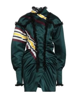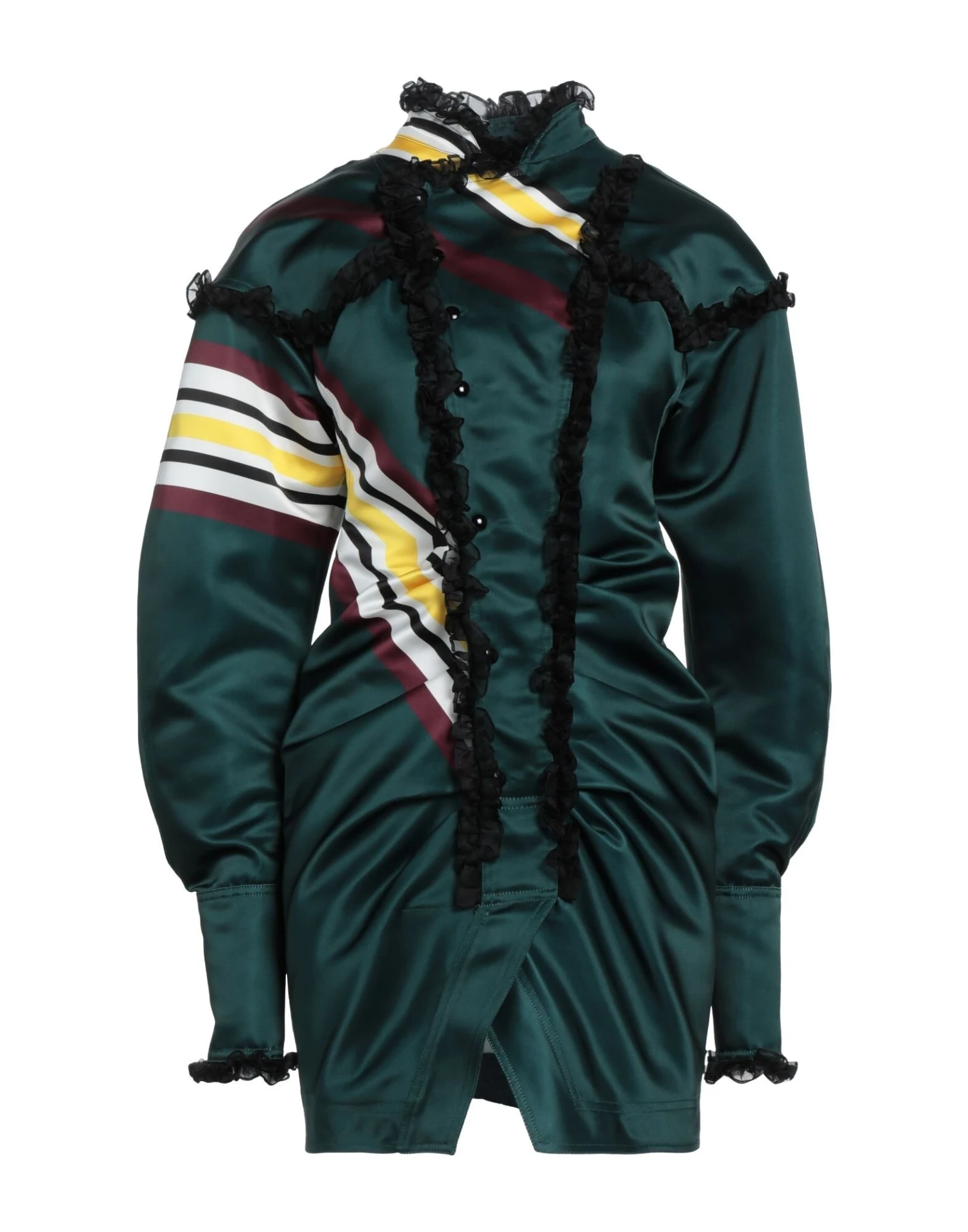 raso, arricciature, fantasia multicolore, collo alla coreana, maniche lunghe, modello a tubino
