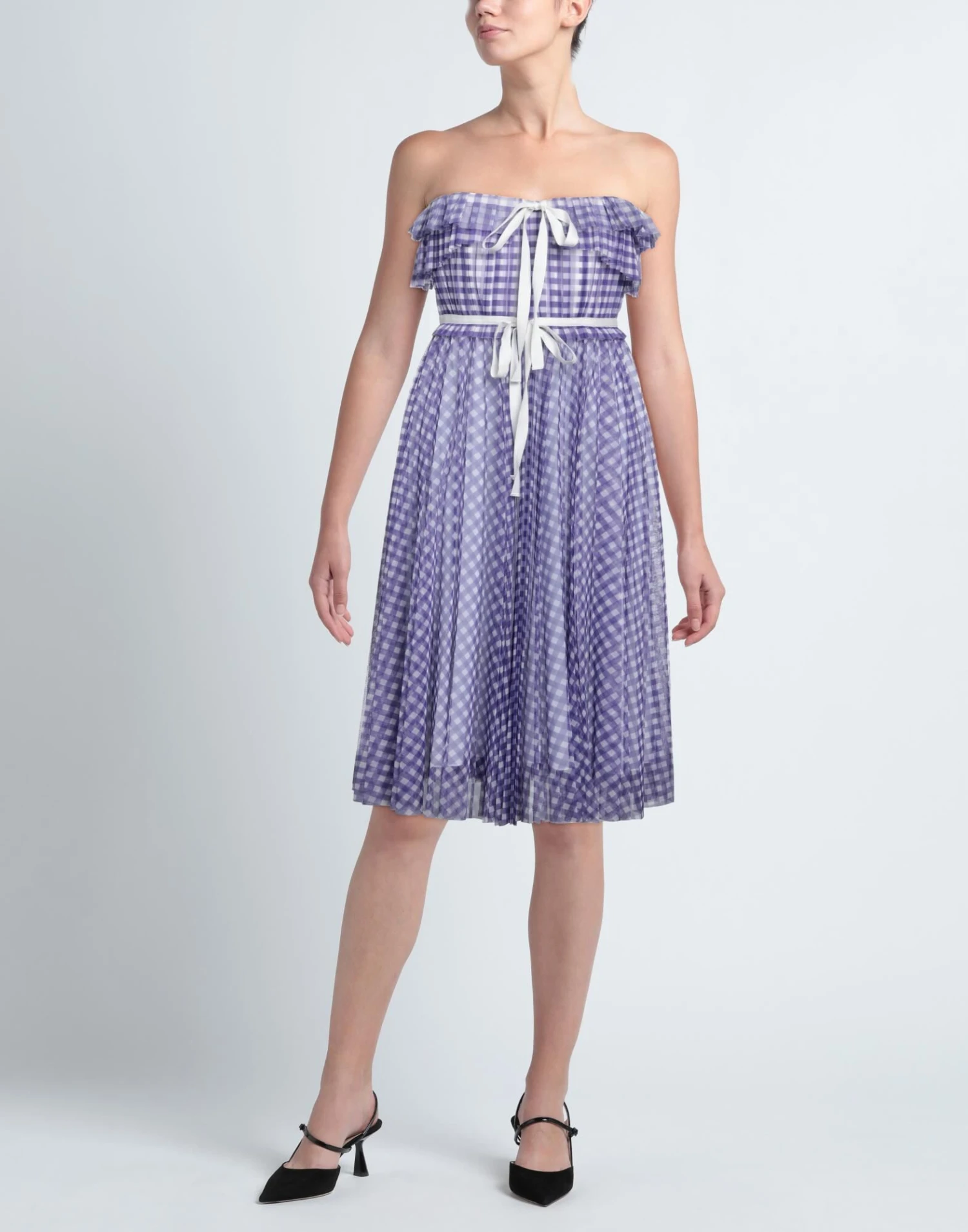 tulle, laccetti, a quadri, collo con scollatura profonda, senza maniche, interno con stecche, zip, gancetti, senza tasche, modello a ruota
