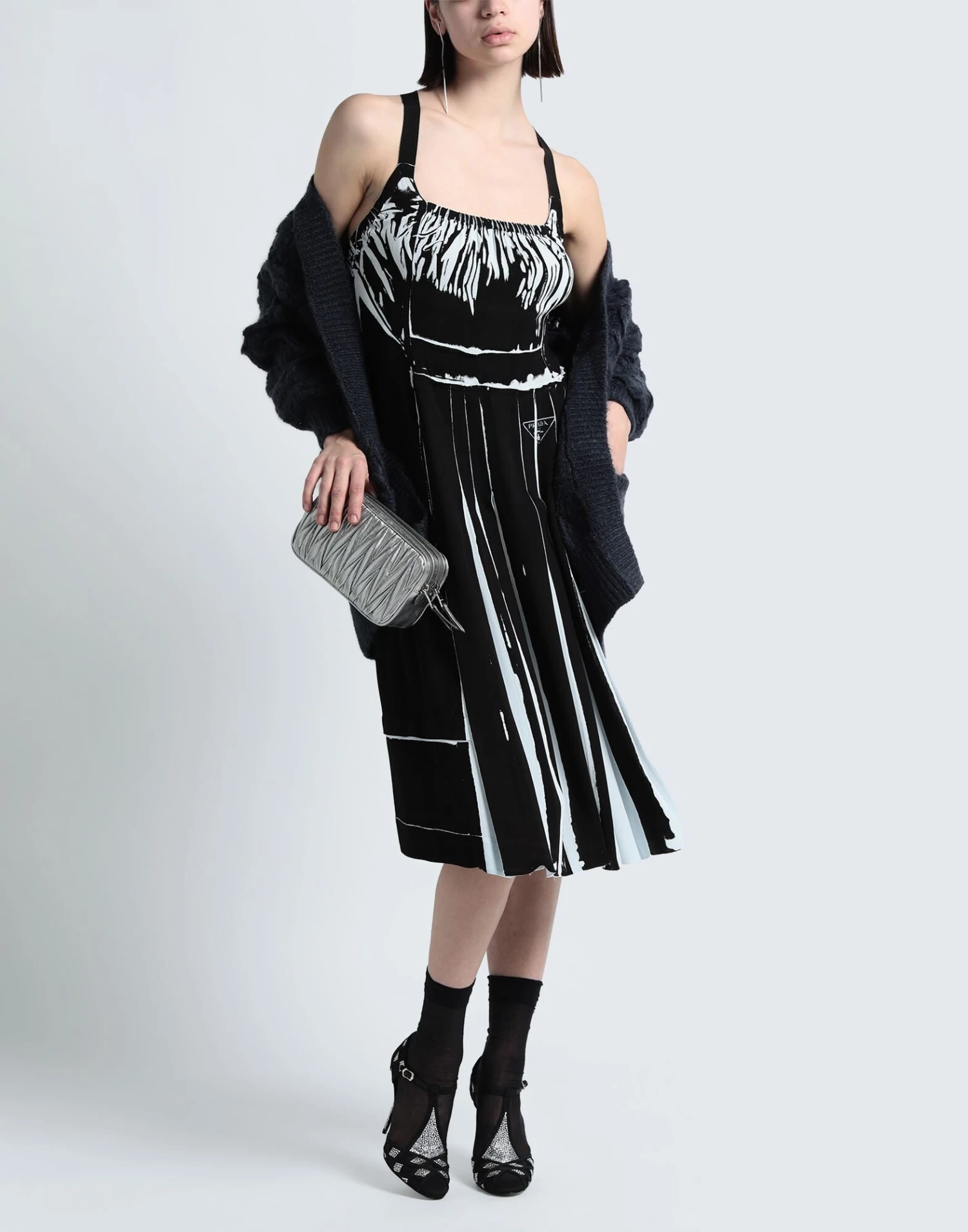 crêpe, pieghe, brand logo, fantasia bicolore, collo ampio, senza maniche, interno sfoderato, senza tasche, automatici, modello a trapezio