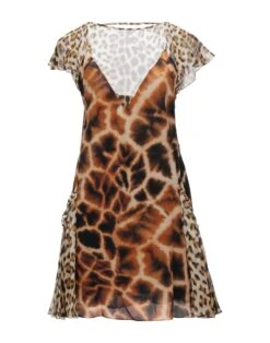 voile, senza applicazioni, fantasia animalier, collo tondo, maniche corte, senza tasche, chiusura sul fianco, zip, interno semi-foderato, elasticizzato