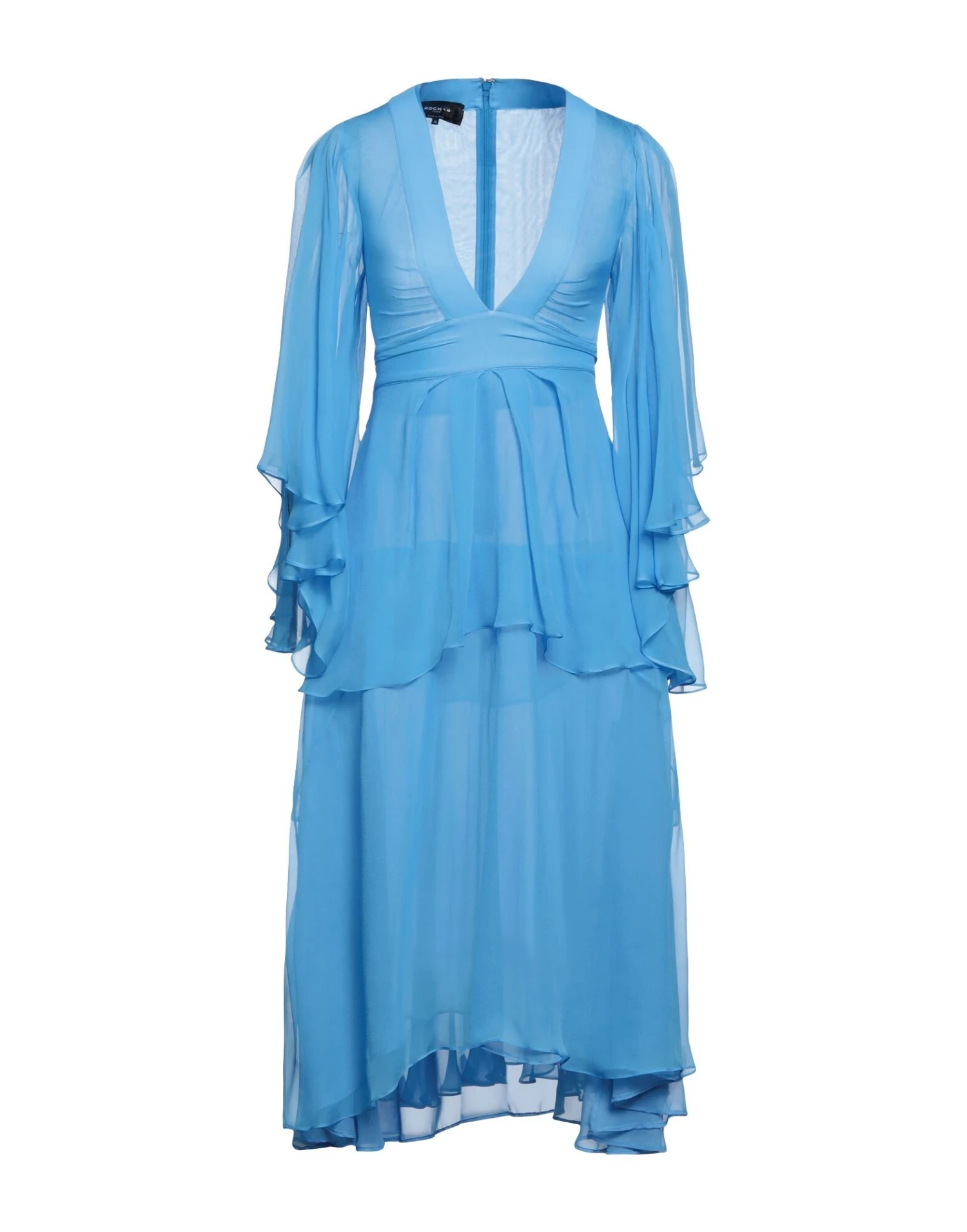 chiffon, senza applicazioni, tinta unita, collo a v, maniche lunghe, interno foderato, zip, senza tasche, modello a trapezio