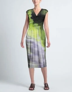 crêpe, tinta unita, collo con scollatura profonda, maniche lunghe, chiusura con laccetti, modello a trapezio