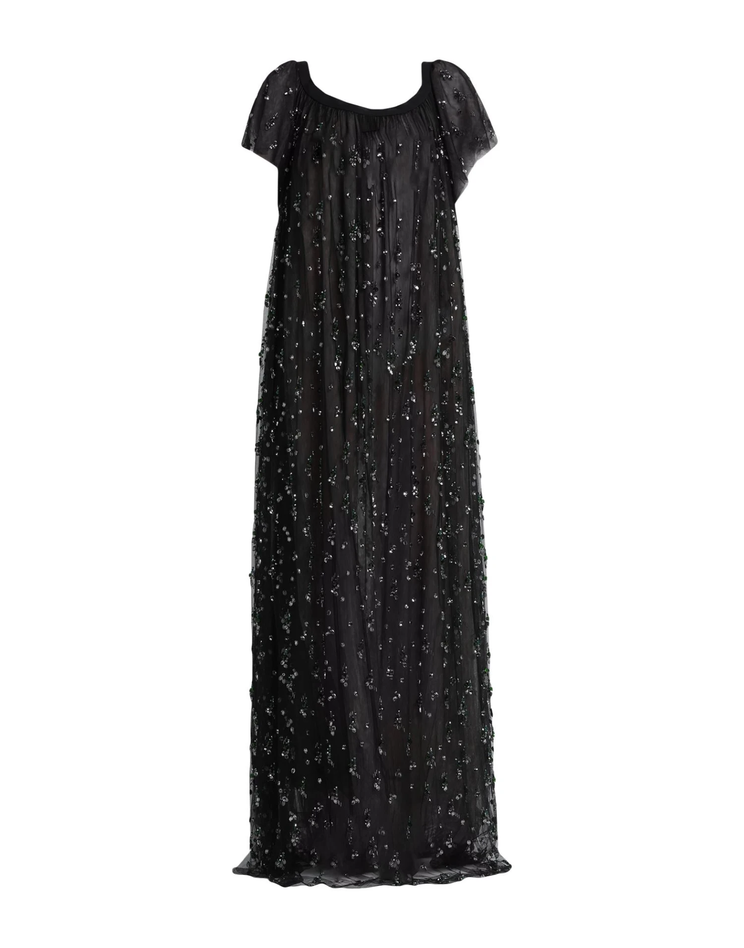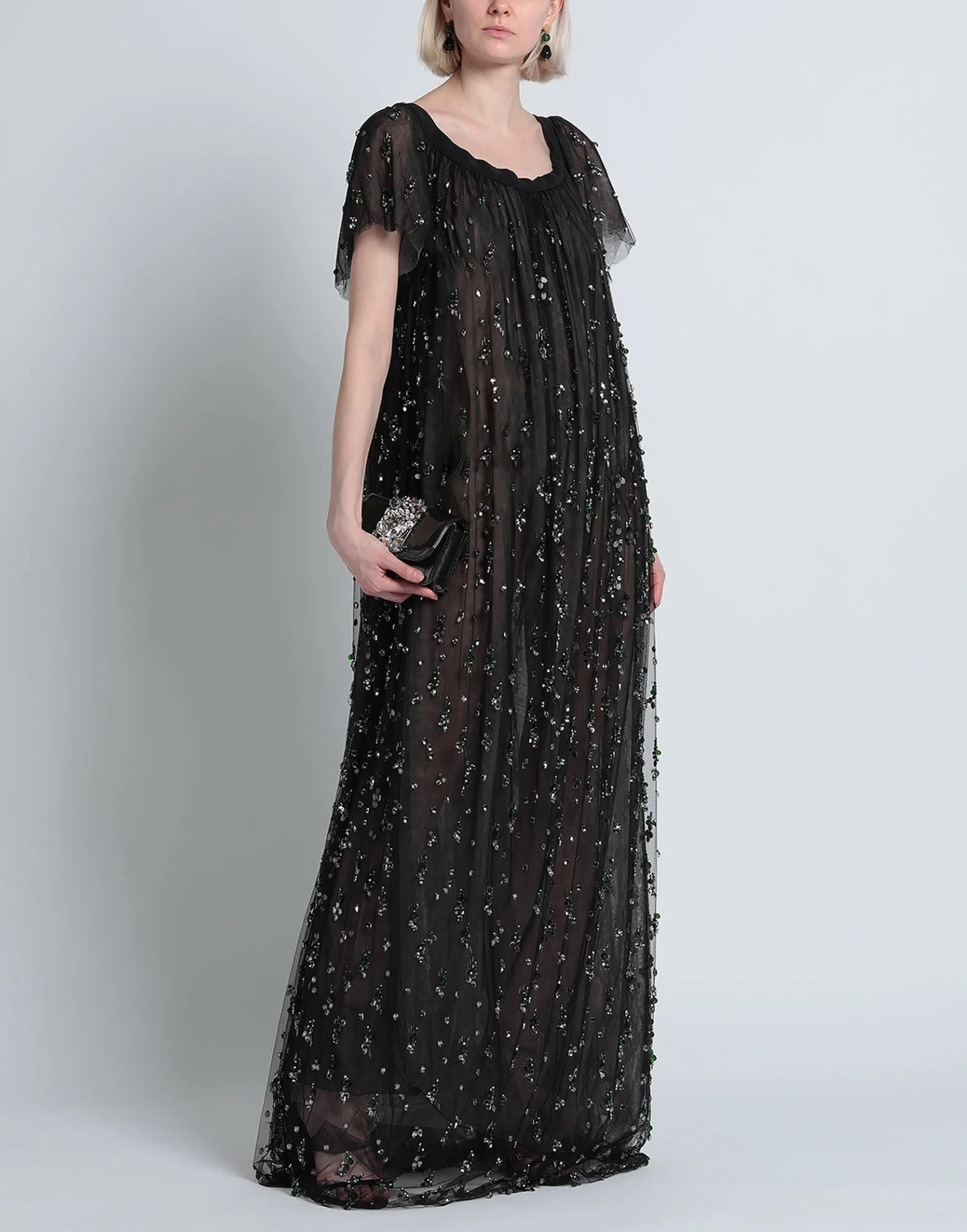 tulle, strass, tinta unita con applicazioni, collo tondo, maniche corte, interno foderato, senza tasche, modello a ruota