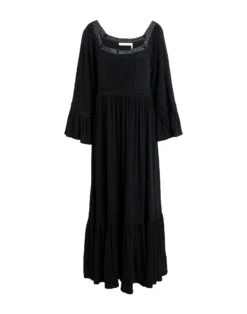 pizzo, jersey, arricciature, tinta unita, collo con scollatura quadrata, maniche lunghe, interno sfoderato, senza tasche, vestito