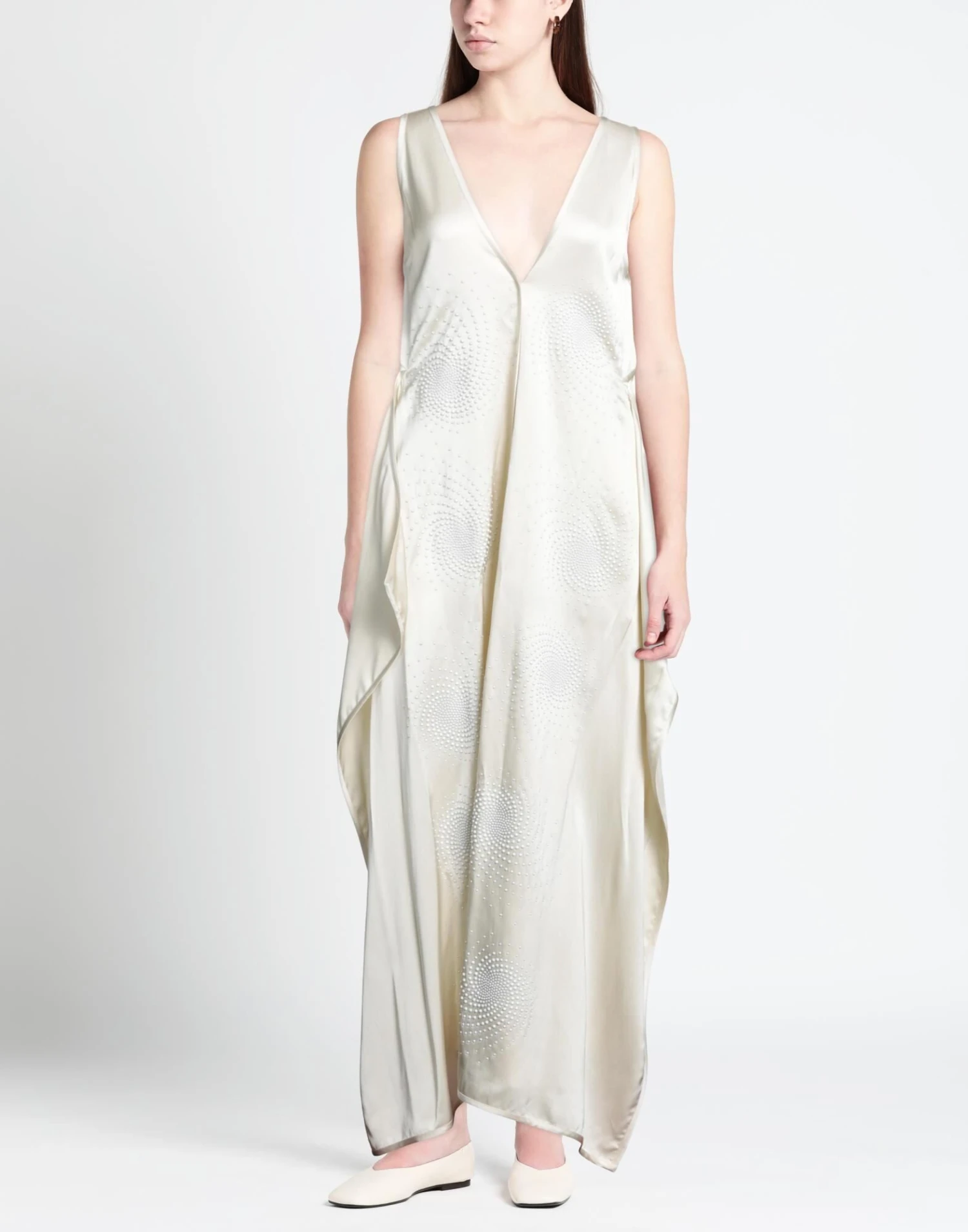 raso, brand logo, borchie, fantasia bicolore, collo con scollatura profonda, senza maniche, interno sfoderato, zip, gancetti, multitasche, elasticizzato, modello a trapezio
