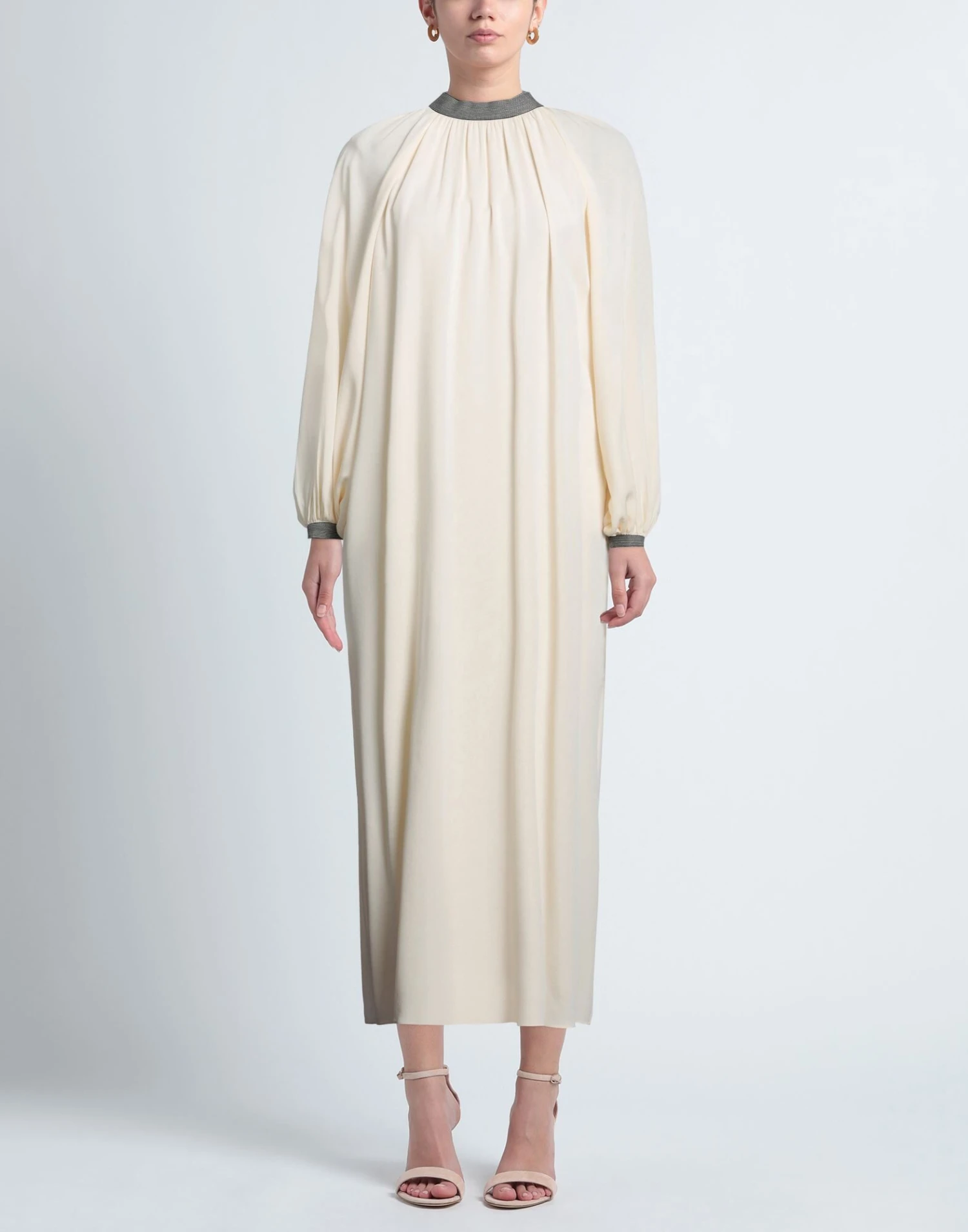 crêpe, cintura, brand logo, fantasia bicolore, collo tondo, maniche lunghe, interno foderato, zip, gancetti, senza tasche, contiene parti non tessili di origine animale, modello a trapezio