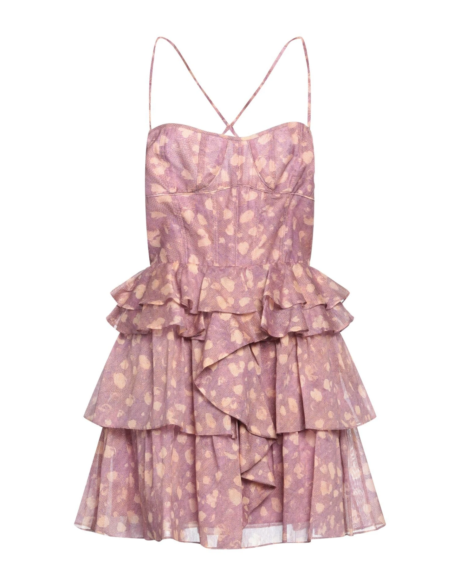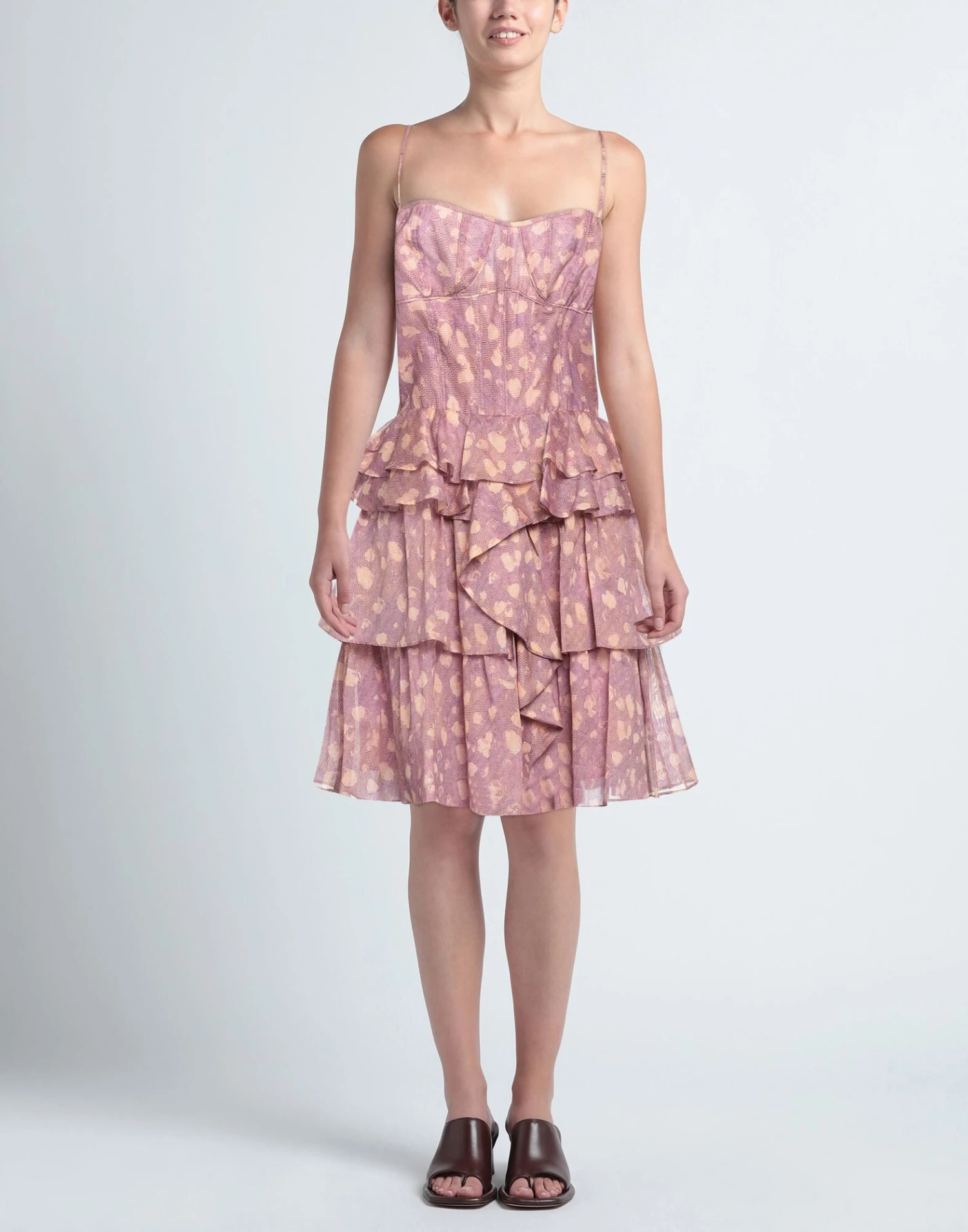 crêpe, balze, fantasia bicolore, collo con scollatura profonda, senza maniche, zip, senza tasche, interno foderato, modello a trapezio
