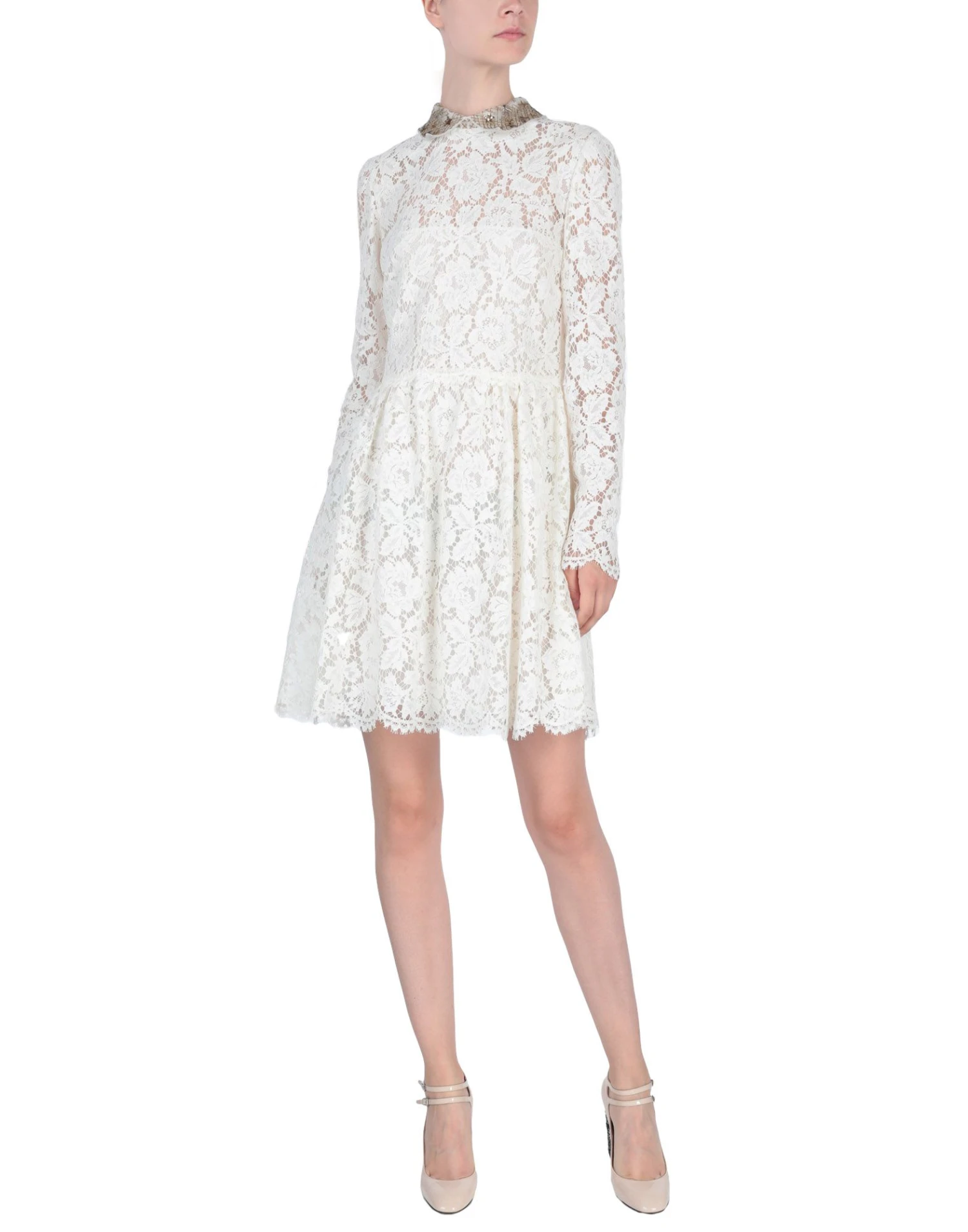 pizzo, lamè, paillettes, fantasia floreale, collo classico, maniche lunghe, senza tasche, chiusura sul retro, zip e gancetto, interno foderato, contiene parti non tessili di origine animale, modello a trapezio