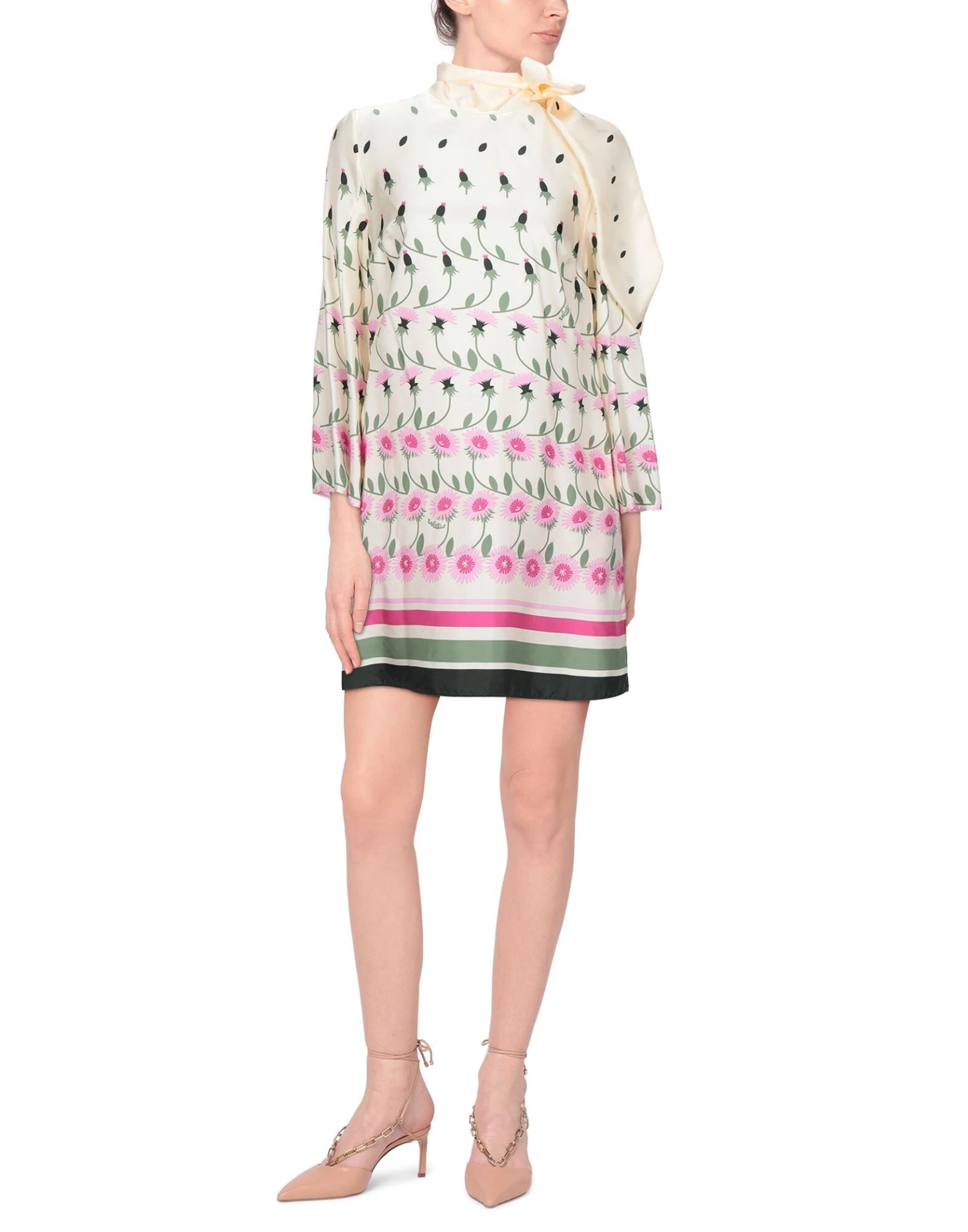 raso, applicazioni a contrasto, fantasia floreale, collo tondo, maniche lunghe, multitasche, chiusura sul retro, zip, interno foderato