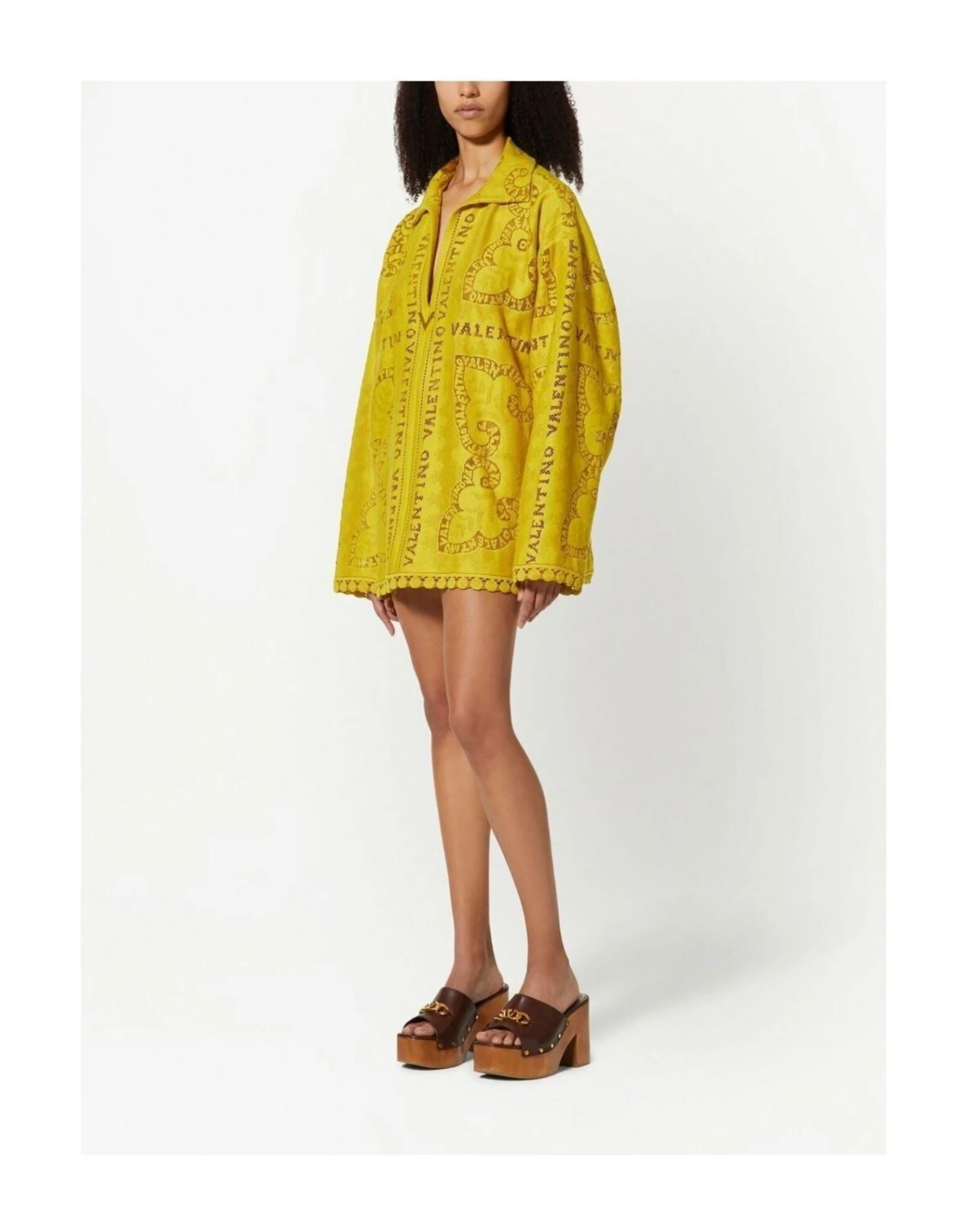 collo a v, fantasia logo, modello chemisier, stampa, senza tasche, maniche lunghe