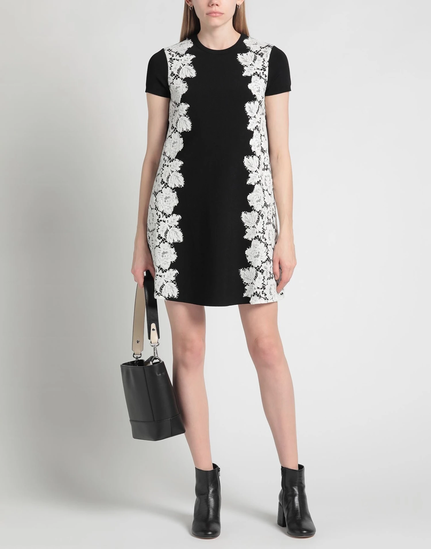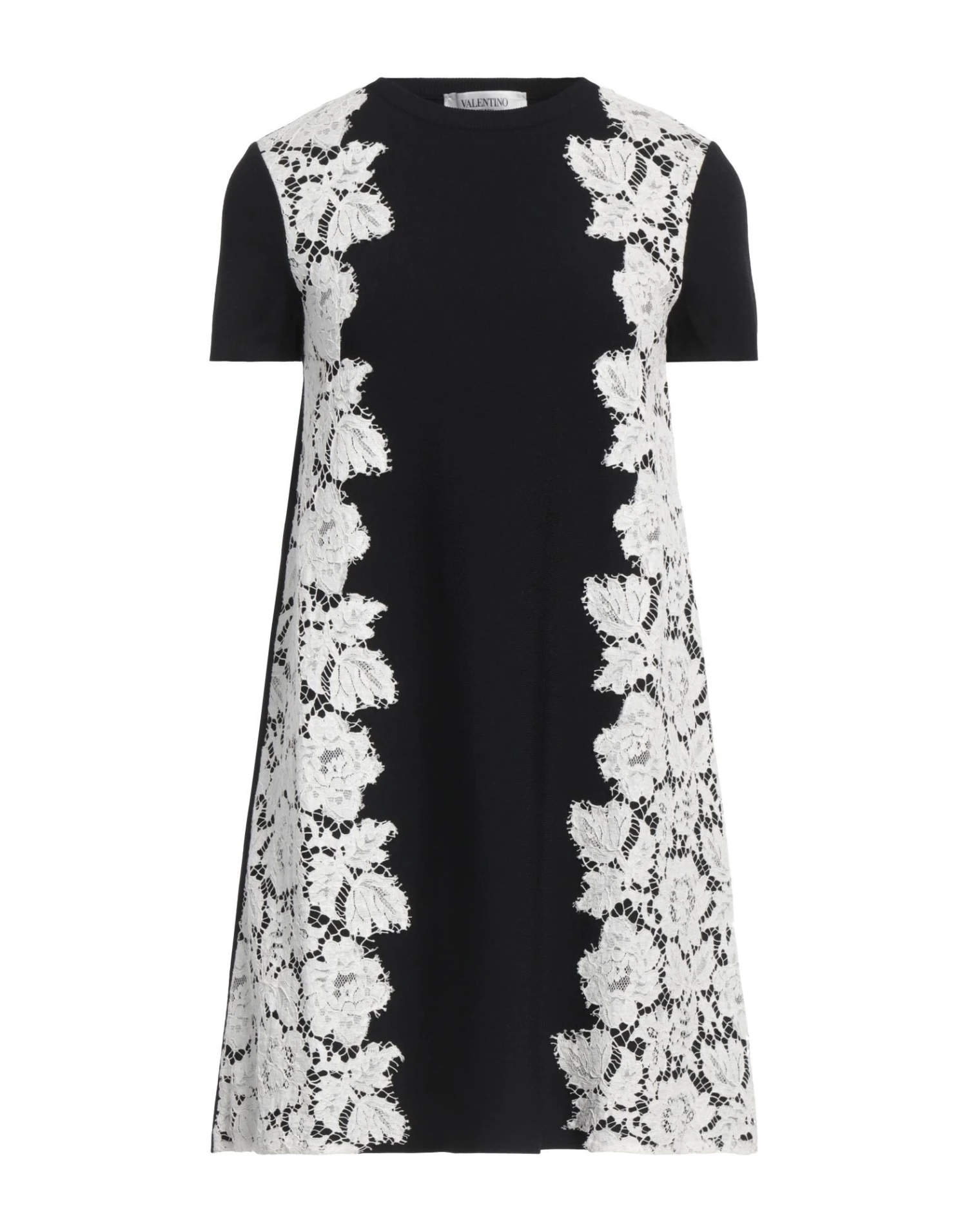 pizzo, lavorato a maglia, senza applicazioni, fantasia bicolore, collo tondo, maniche corte, senza tasche, interno sfoderato