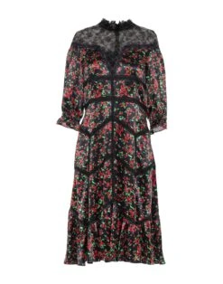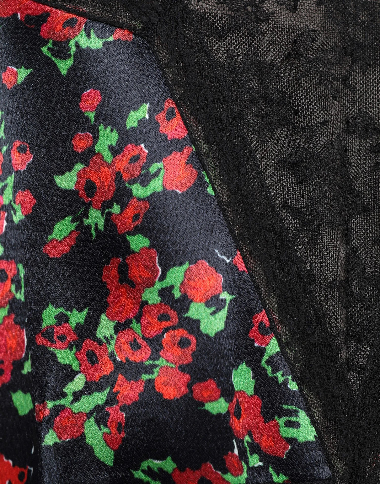 pizzo, raso, senza applicazioni, fantasia floreale, collo alto, maniche a 3/4, senza tasche, chiusura sul retro, zip, interno semi-foderato