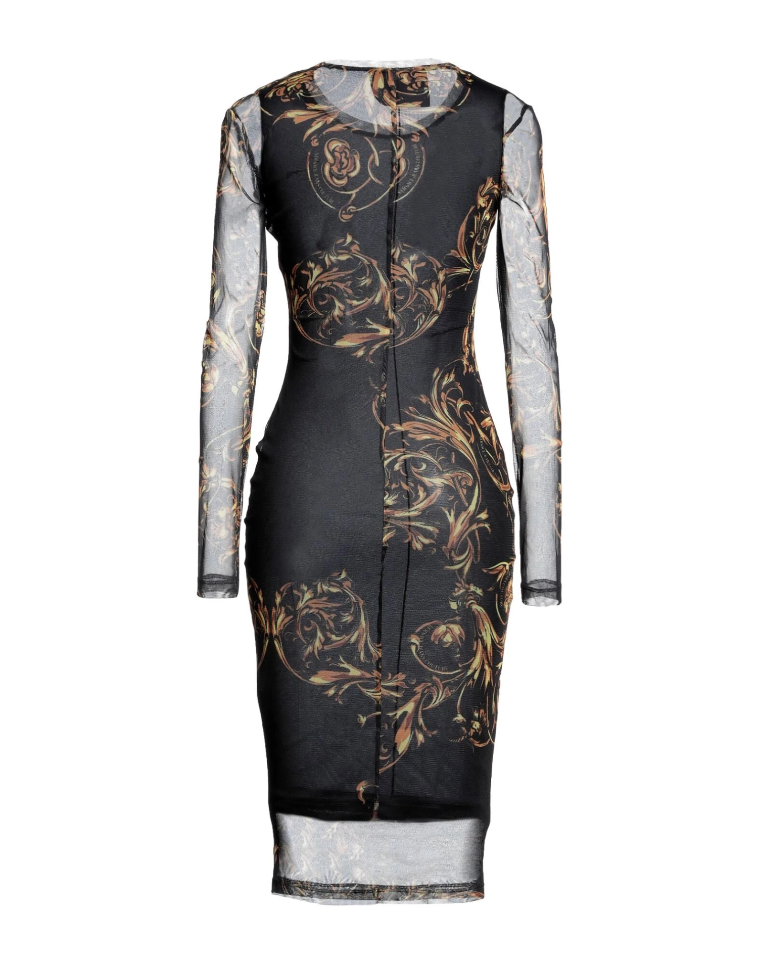 tulle, brand logo, fantasia del designer, collo tondo, maniche lunghe, sottoveste interna, modello a tubino
