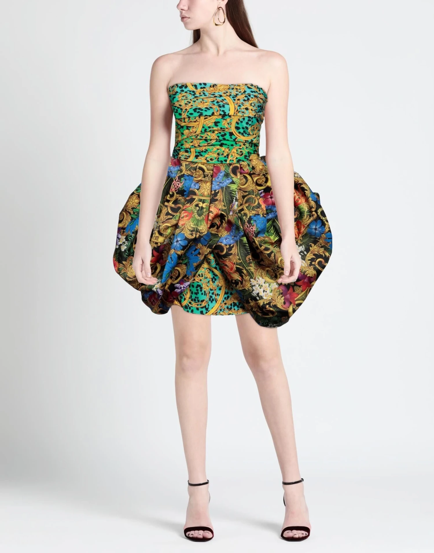 Collo con scollatura quadrata, Fantasia floreale, Senza maniche