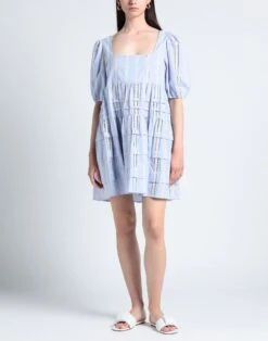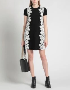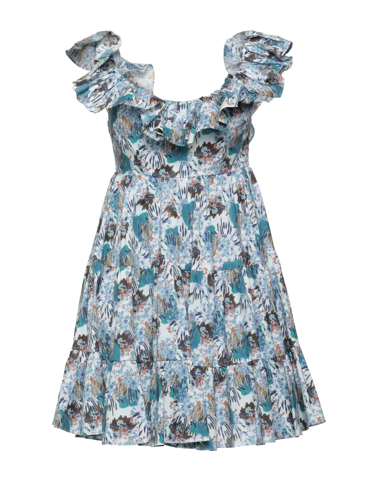 tela, ruches, fantasia floreale, collo con scollatura profonda, maniche corte, interno parzialmente foderato, senza tasche, modello a trapezio, vestibilità ampia