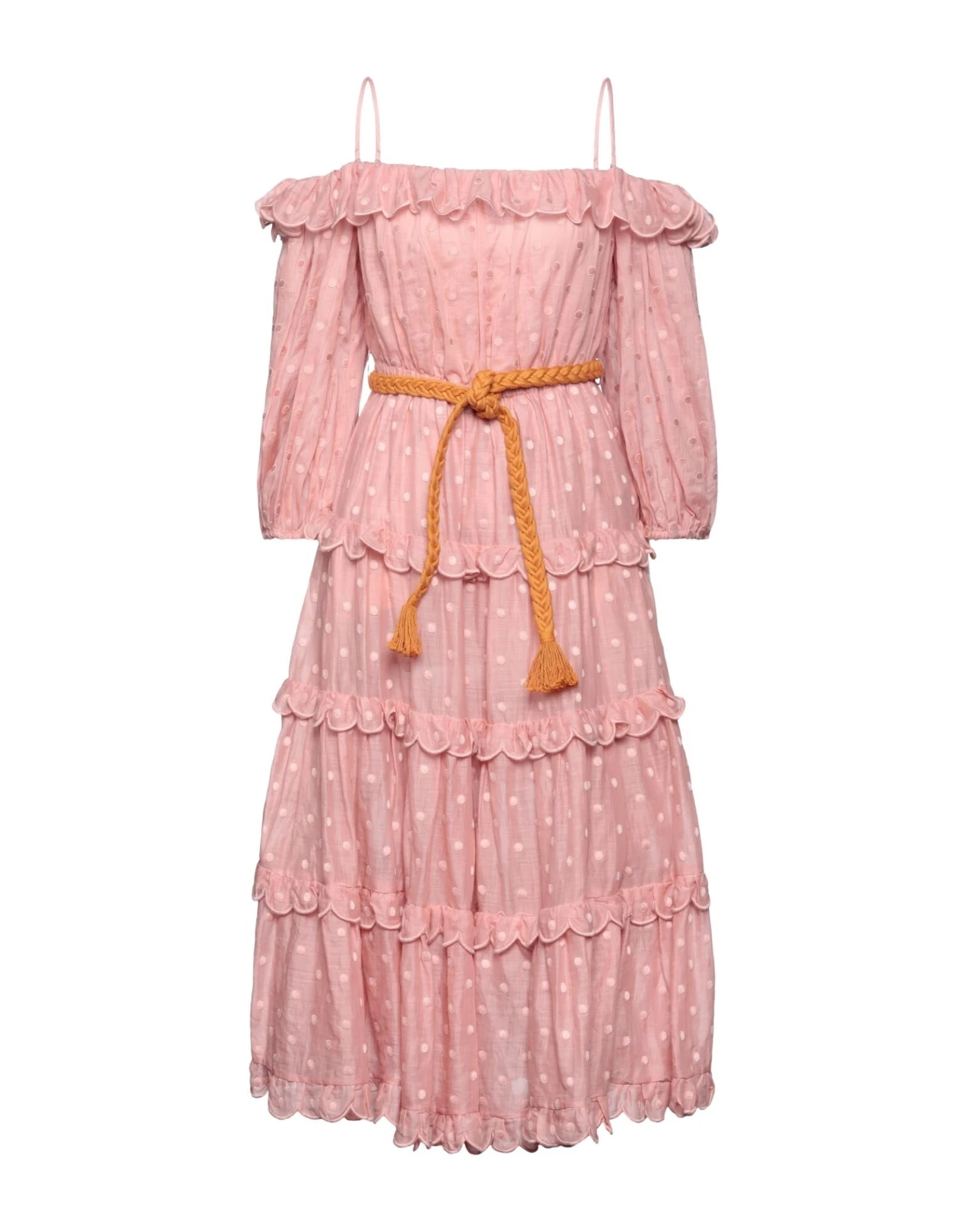 tela, cintura, a pois, collo ampio, maniche a 3/4, interno foderato, senza tasche, modello a ruota